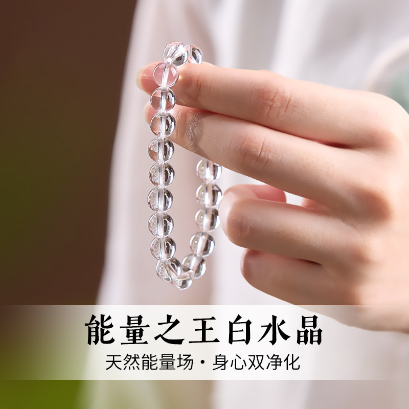 灵文手作白水晶手串天然正品全净体手链收藏级原石情绪稳定白色女