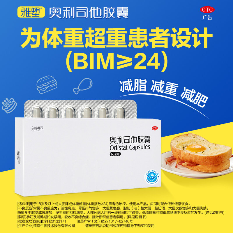 雅塑奥利司他胶囊正品官方旗舰店瘦腿减脂肪瘦身60mg排油丸8粒