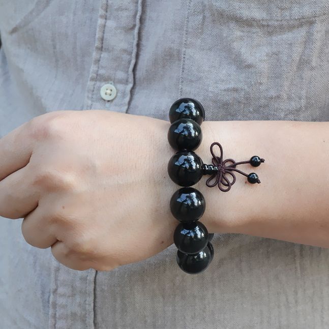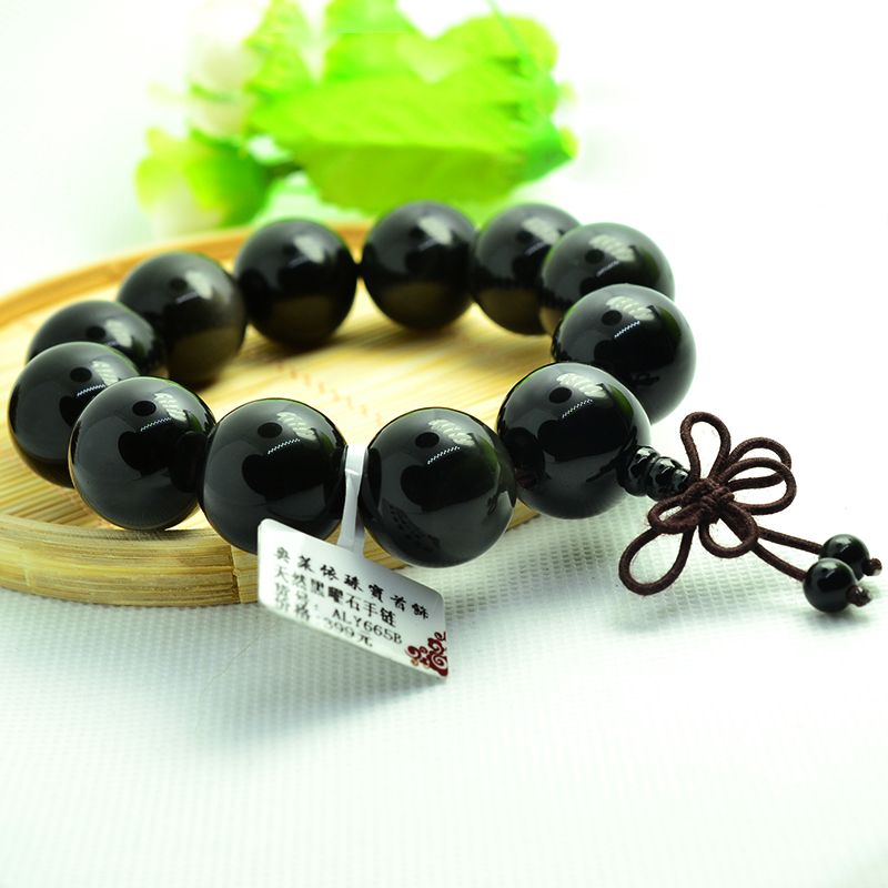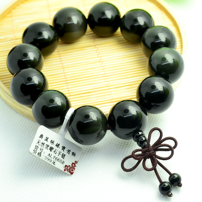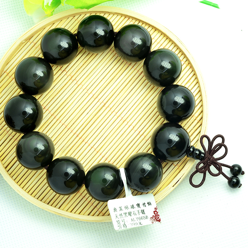 天然双彩虹眼黑曜石念佛珠手链男散串文玩宝石本命蛇年中国结饰品