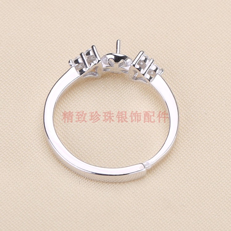 DIY配件S925纯银调节活口经典时尚戒指托指环半成品珍珠空托饰品