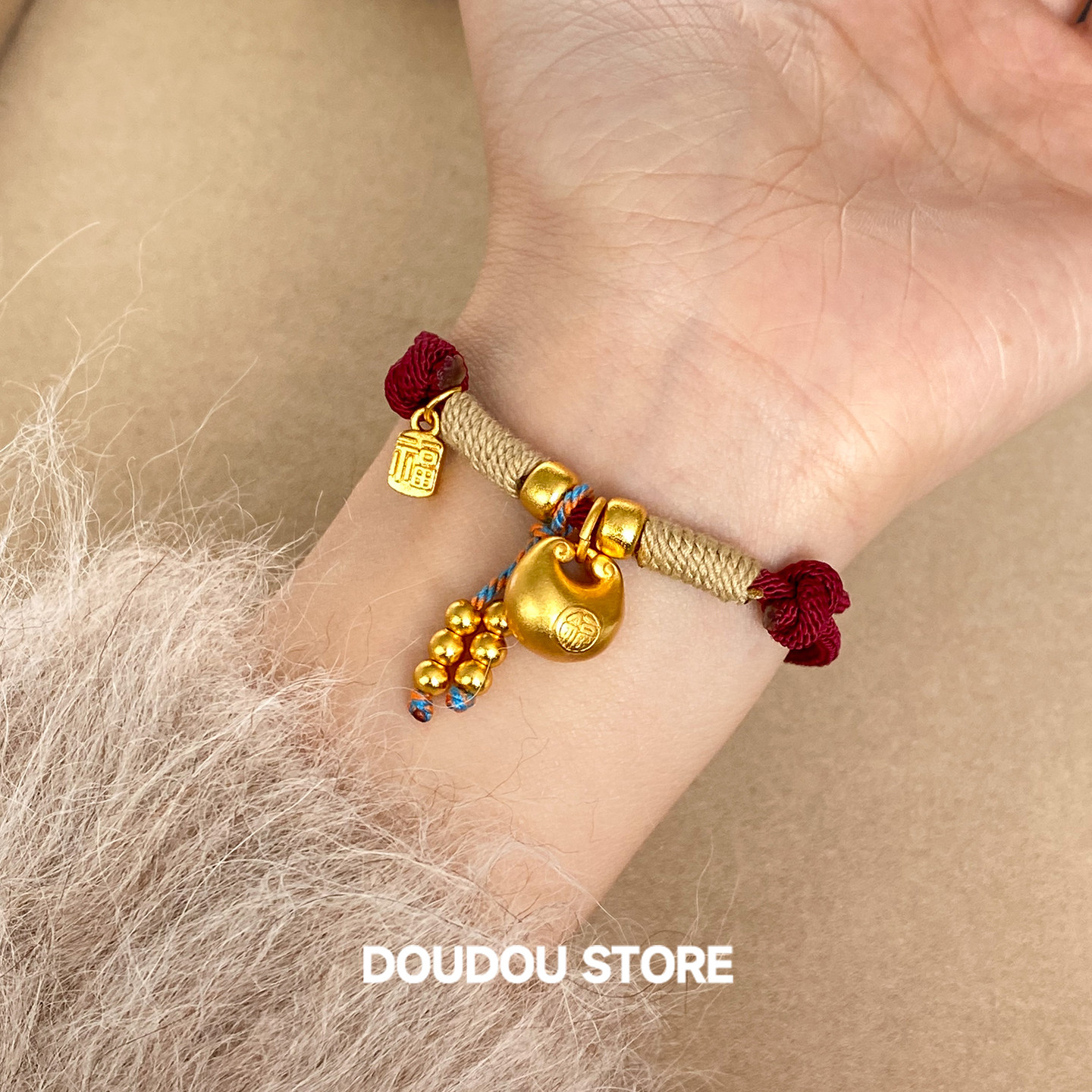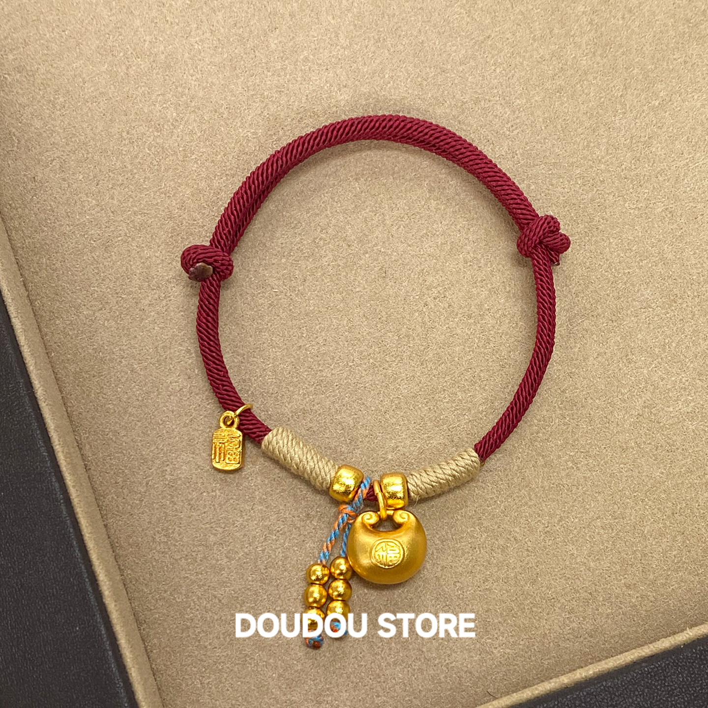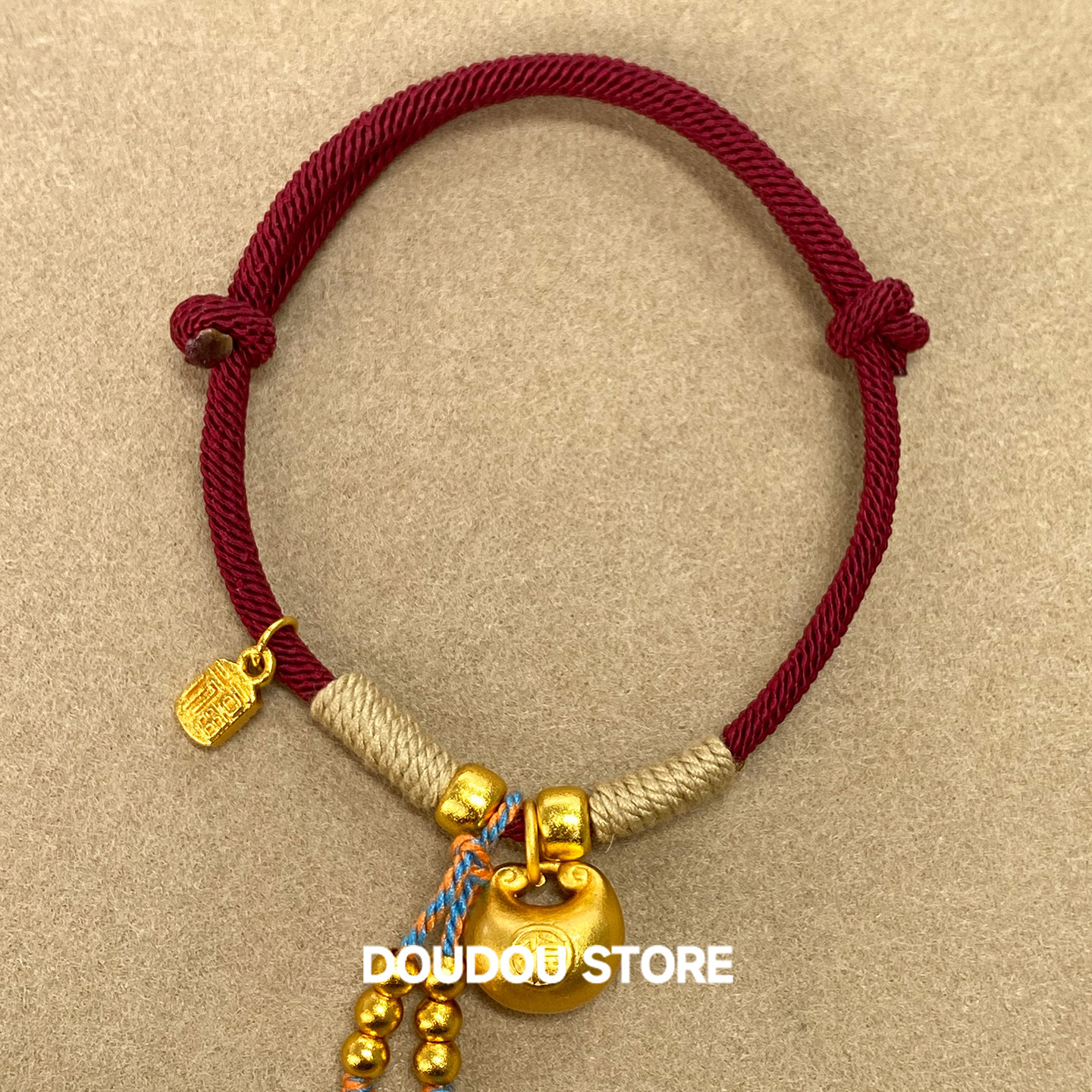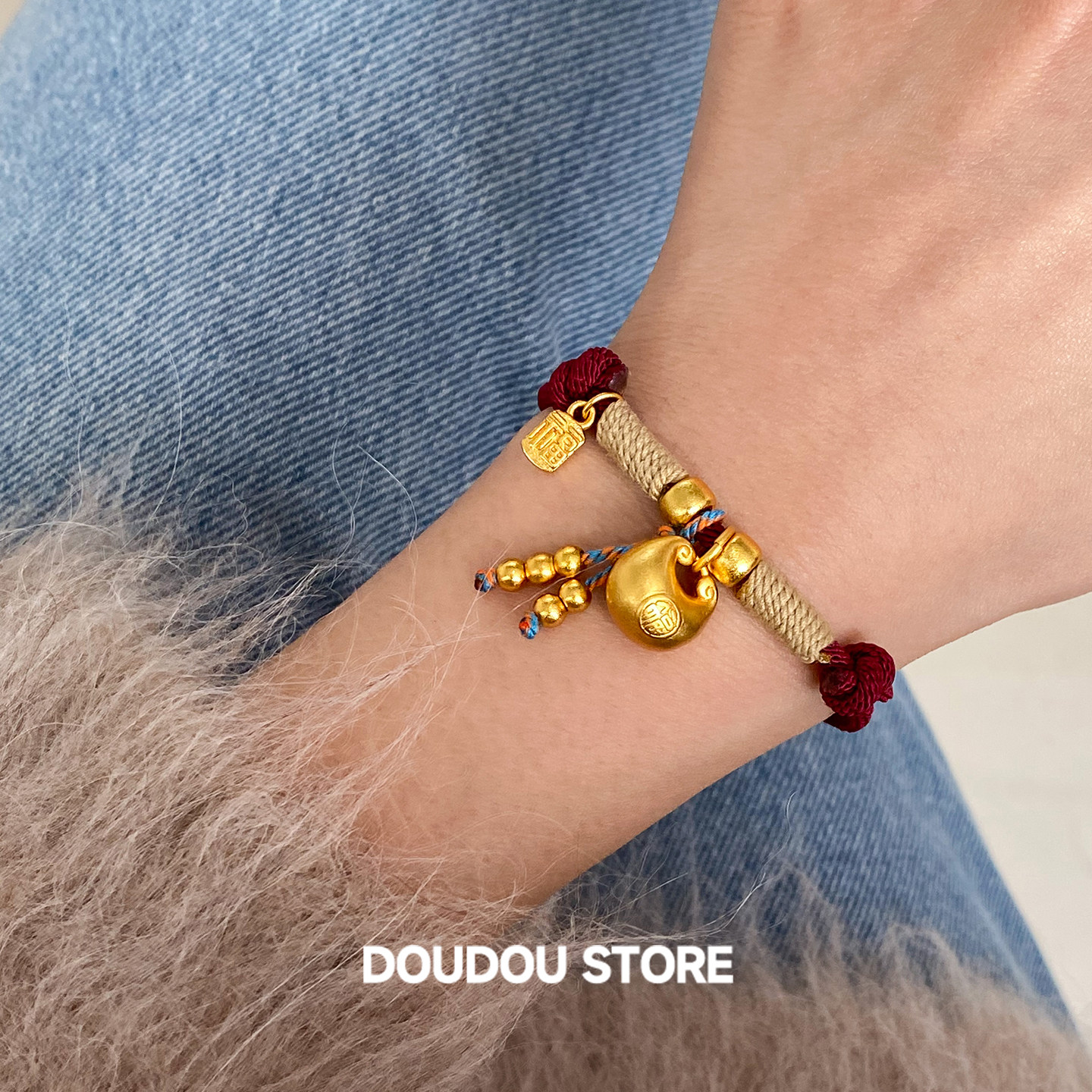 DOUDOUSTORE新年红色元宝手链可调节女马年春节小马编织编绳高端