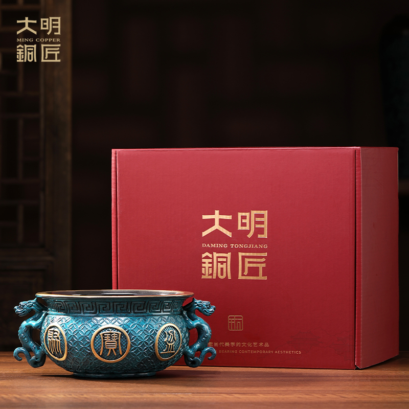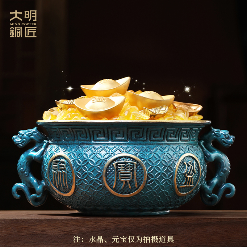 大明铜匠聚宝盆摆件招财聚财办公室客厅家居装饰公司乔迁开业礼品