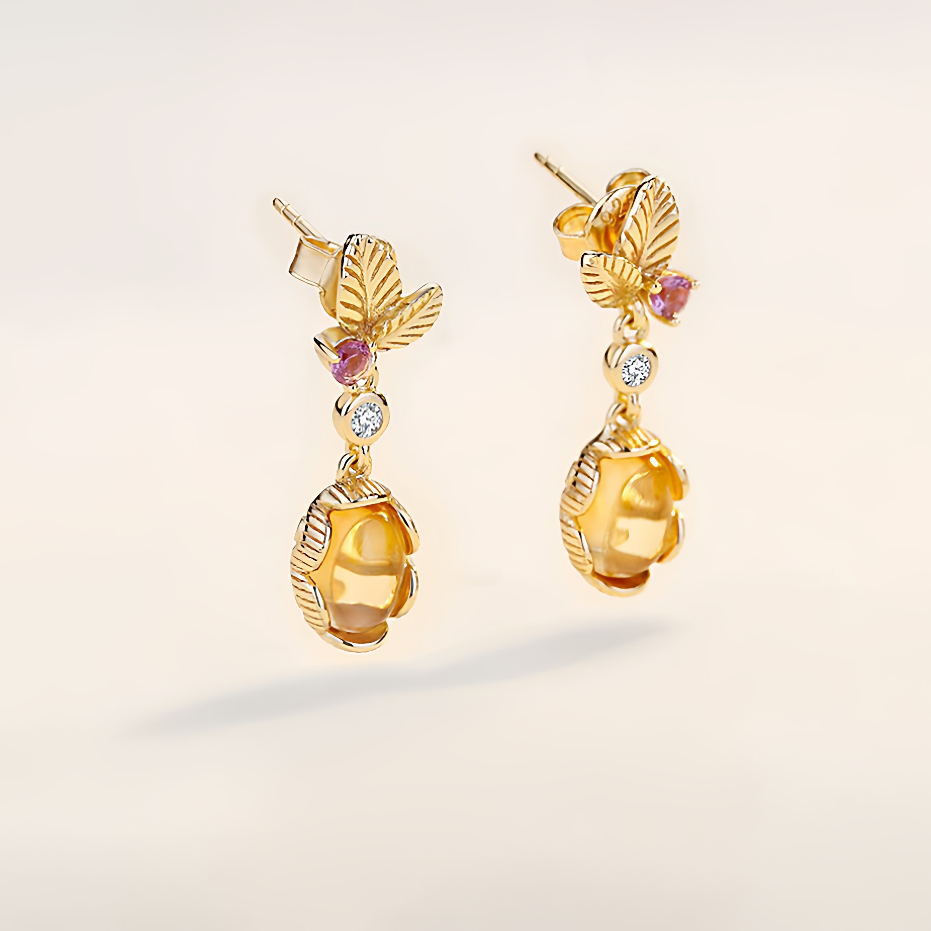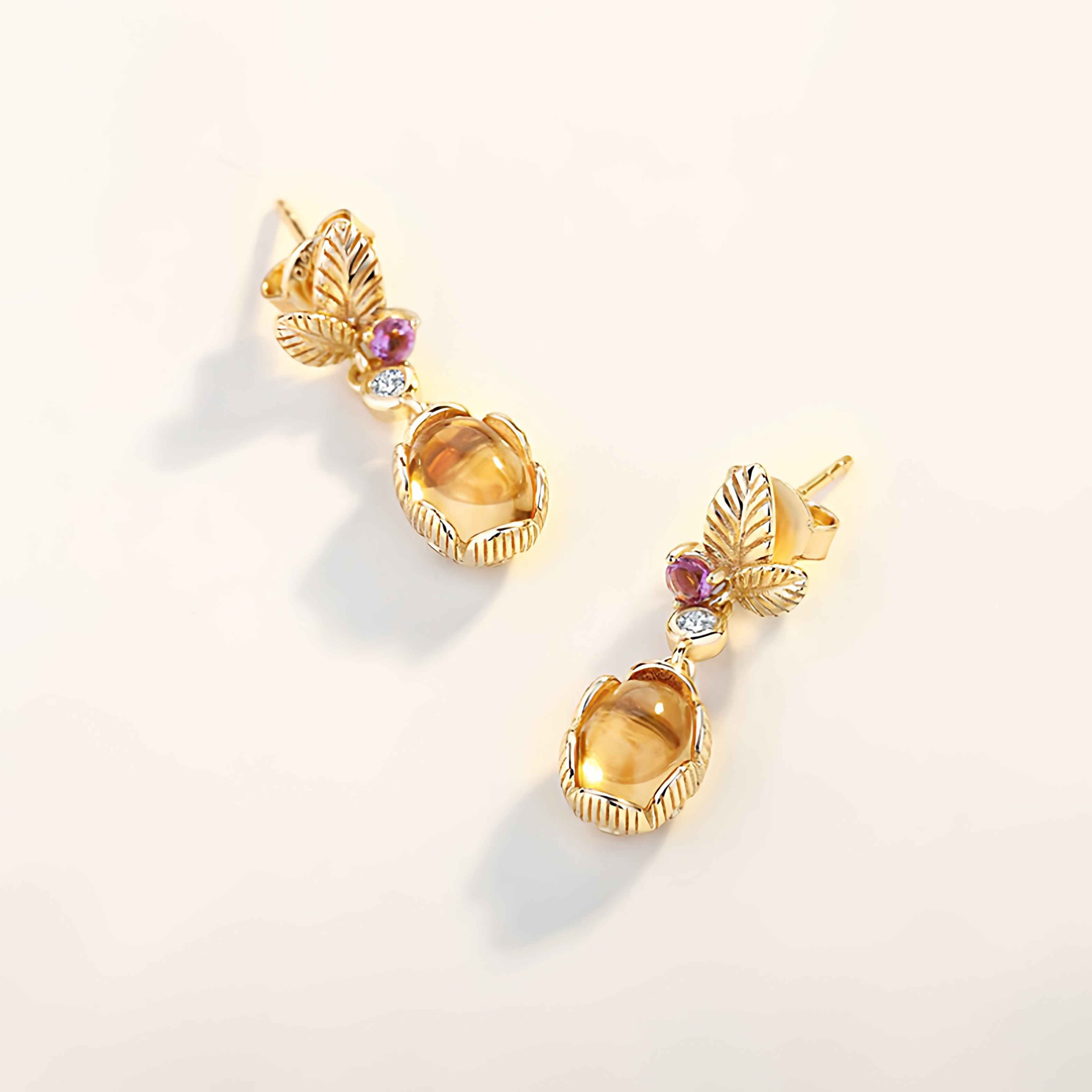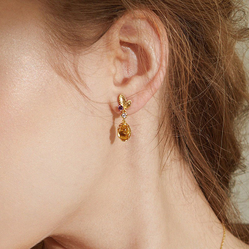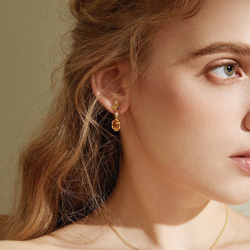 天然黄水晶耳环女S925纯银耳钉耳坠气质轻奢耳饰冬小众设计高级感