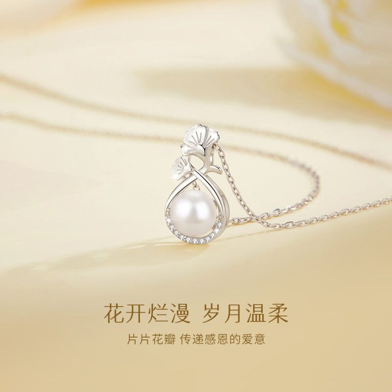 S925银康乃馨珍珠项链女款2024年新款轻奢小众吊坠锁骨链礼物高级