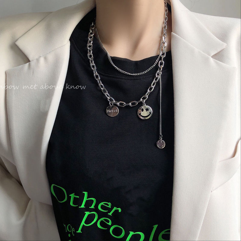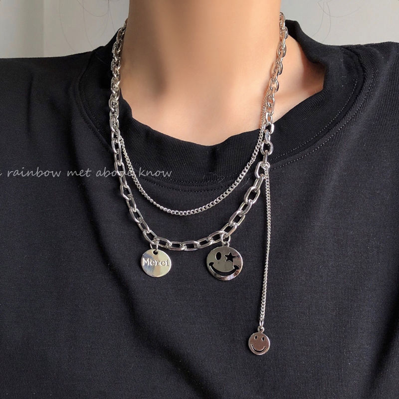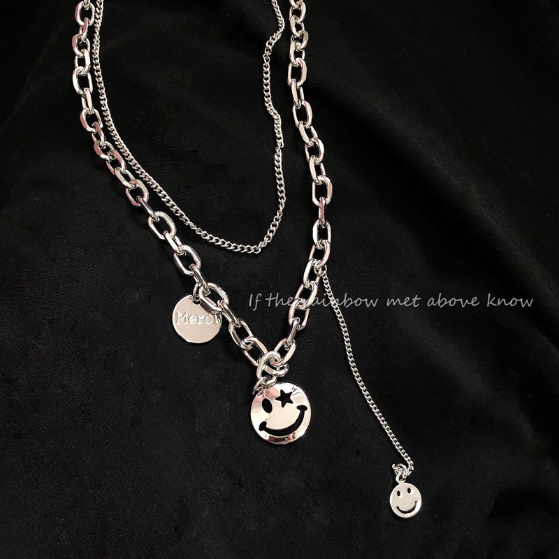 笑脸钛钢项链男潮牌简约百搭配饰女ins嘻哈小众设计感个卫衣链