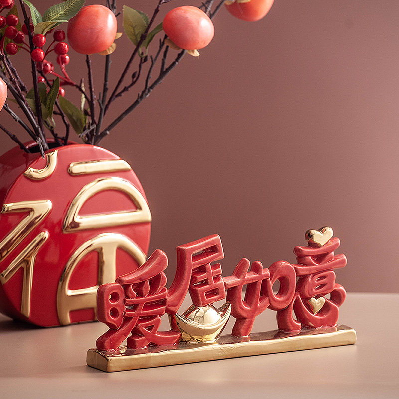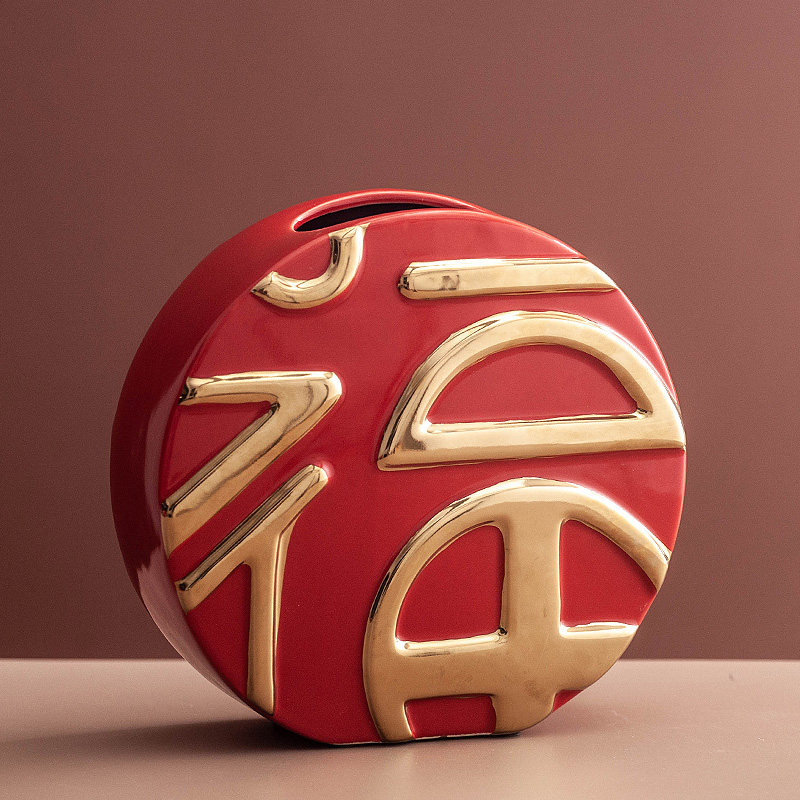 新中式陶瓷花瓶客厅电视柜酒柜桌面喜庆福字进门玄关装饰品摆件
