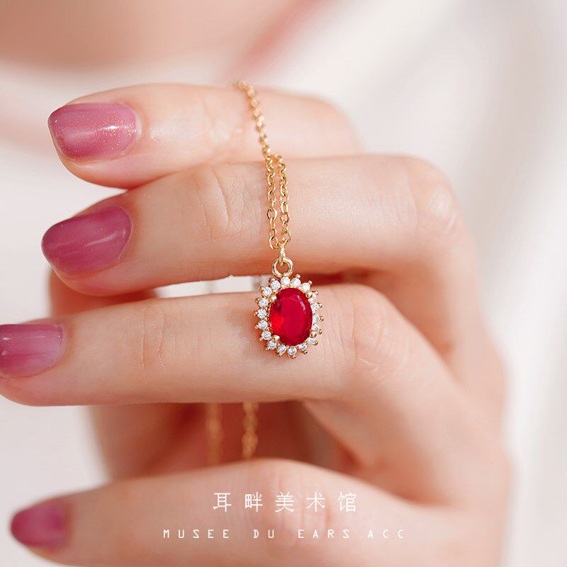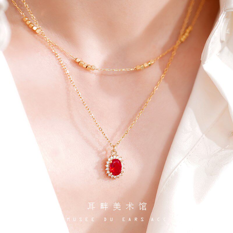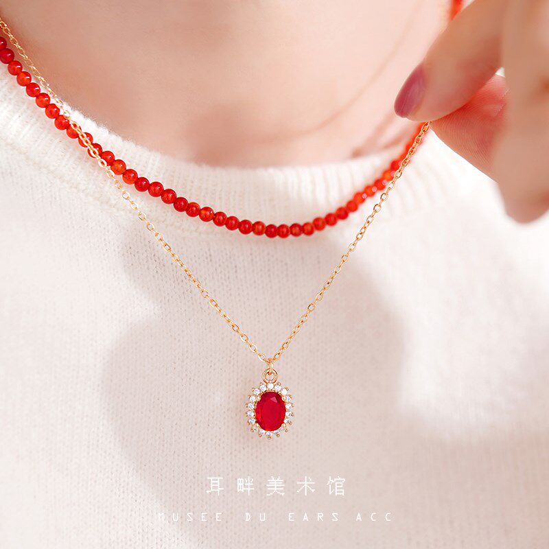 B新年红色独特人造水晶石细项链女配饰女秋冬高级感轻奢小众设计