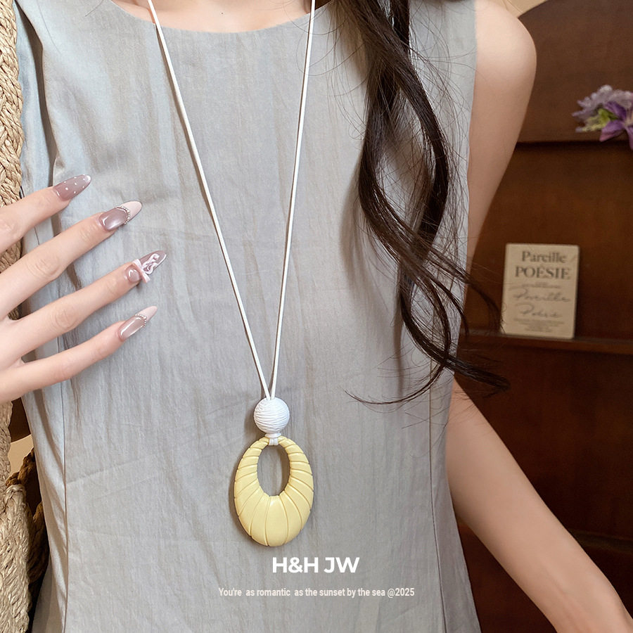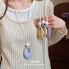 2026新款爆款蓝色椭圆吊坠项链轻奢高级感长款毛衣链小众挂脖配饰