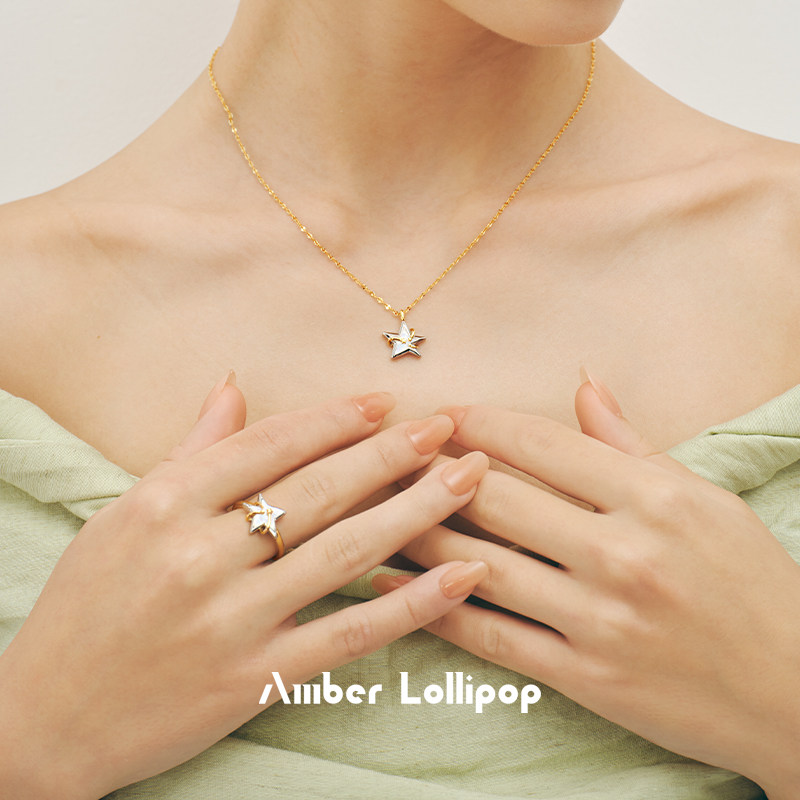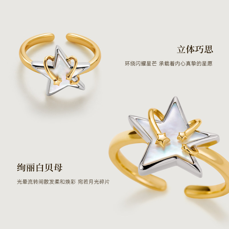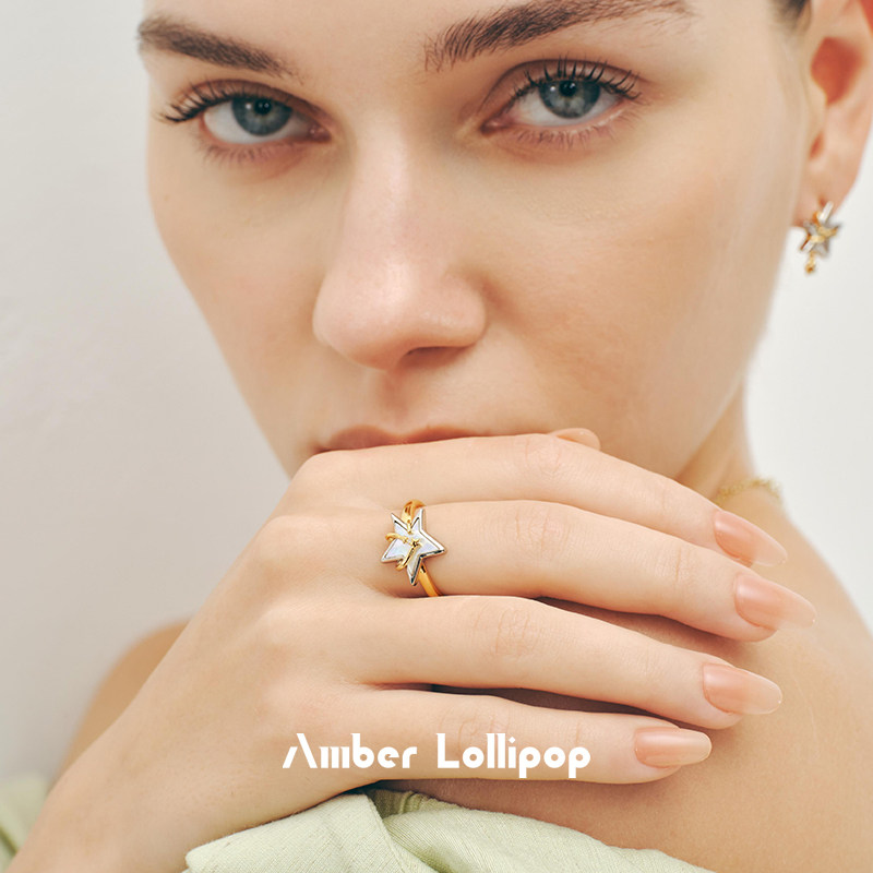 AmberLollipop天然贝母戒指女轻奢设计开口食指戒新款 北极星系列