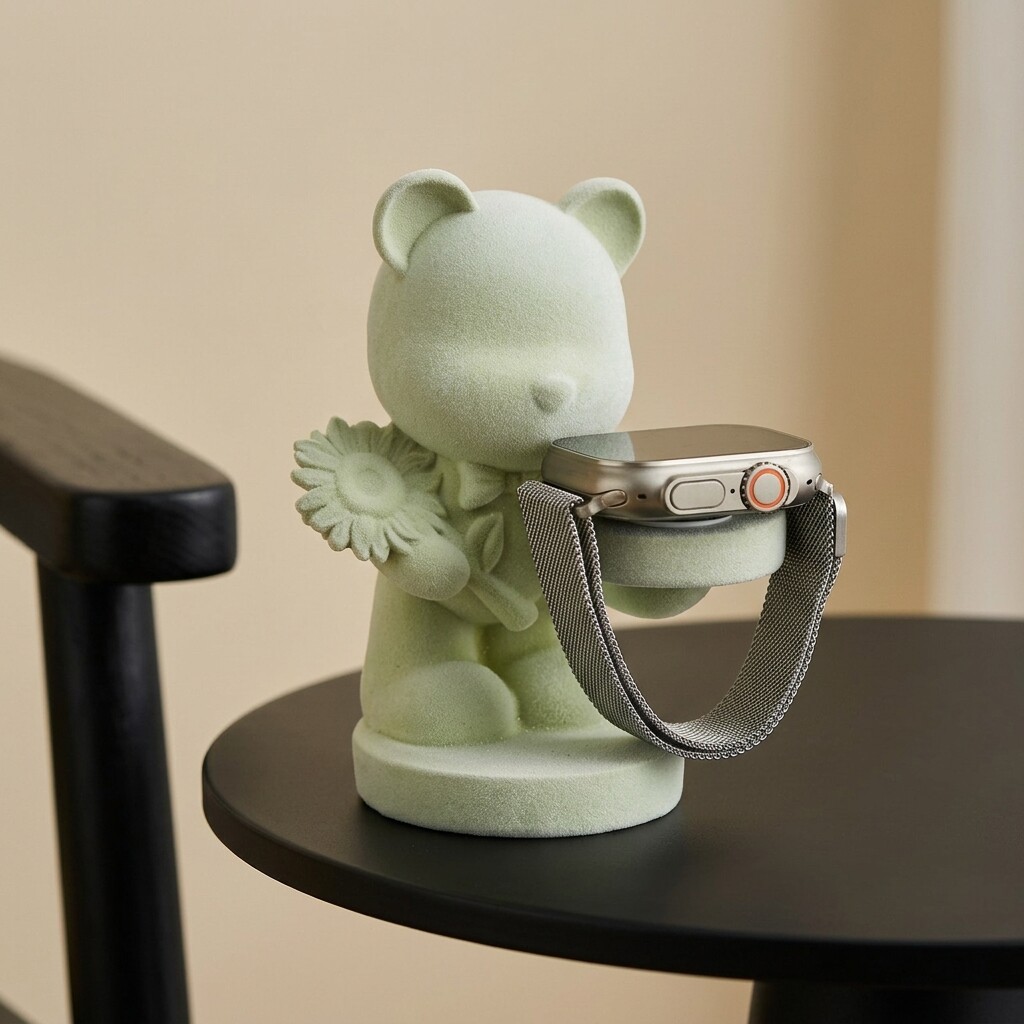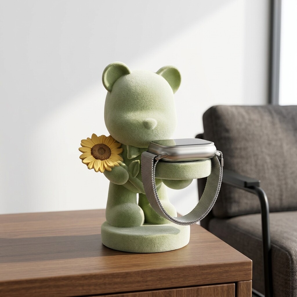 ins风卡通小熊摆件可爱绿色毛绒公仔桌面装饰潮玩