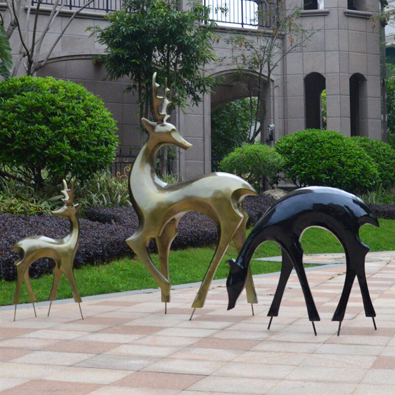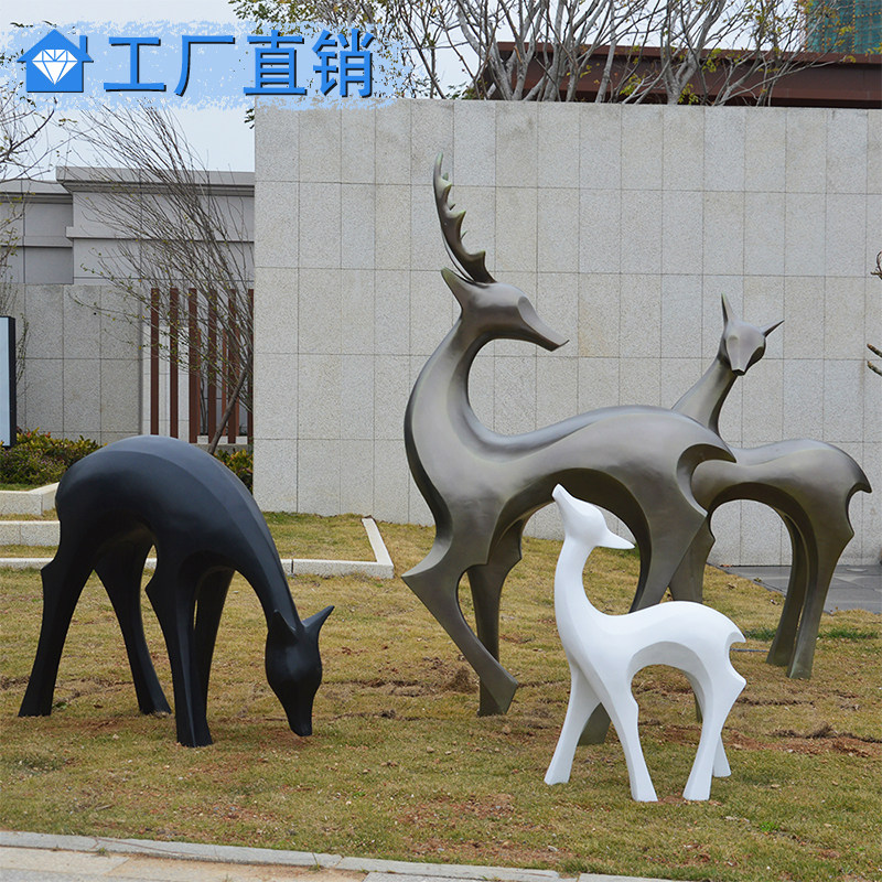 钢白色鹿雕塑小区公园草坪学校售楼部幼儿园抽象动物