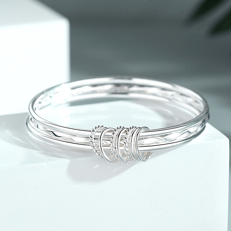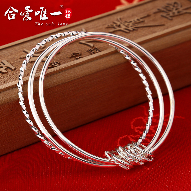 日韩女时尚三环手环银饰9999足银纯银手镯子饰品手饰手链三生三世