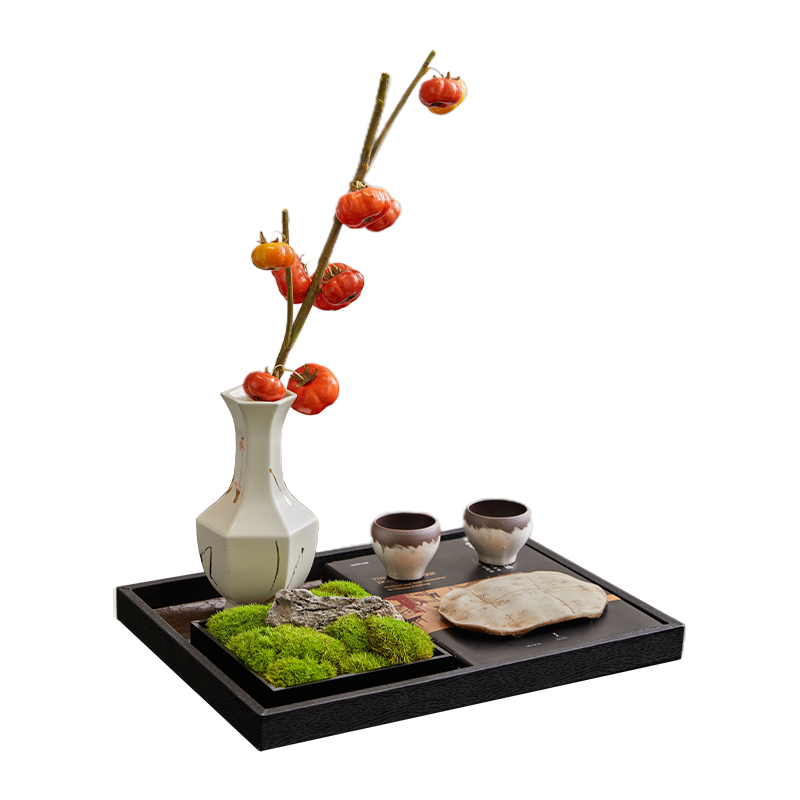 新中式美学古典工艺品托盘茶具纸巾盒组合休闲区布置茶几装饰摆件