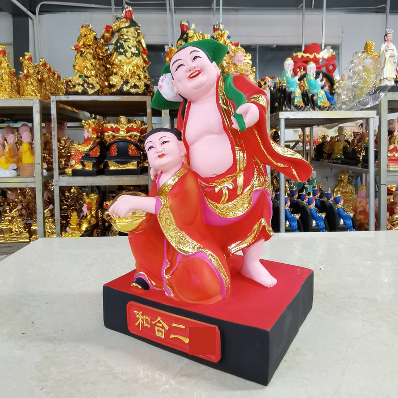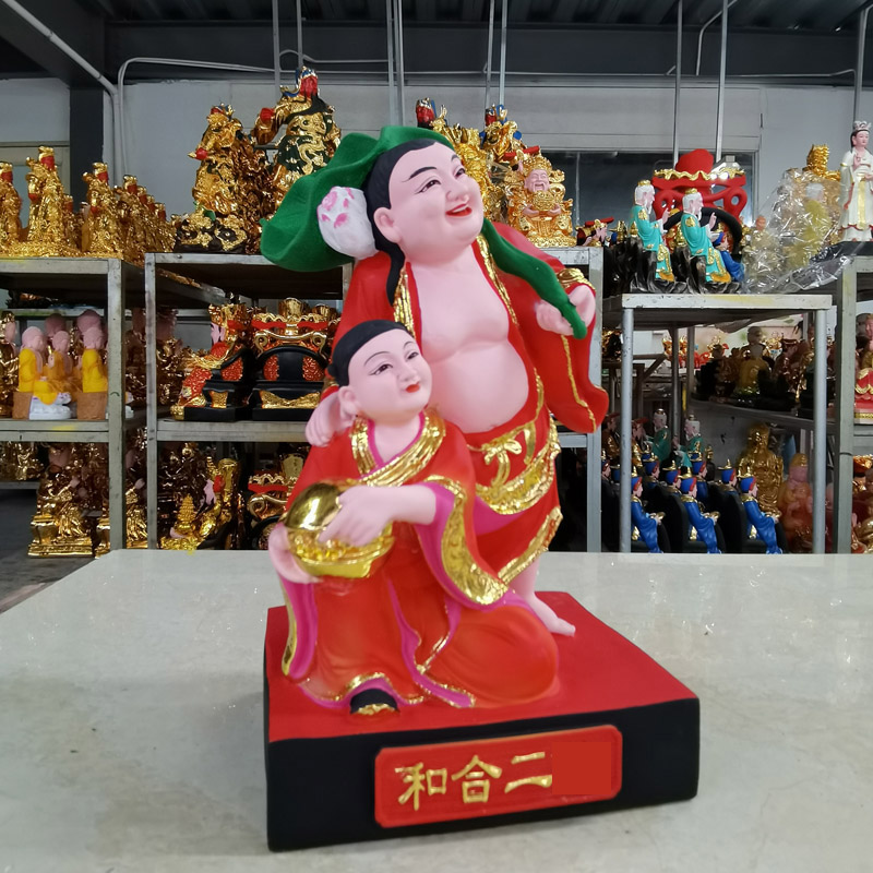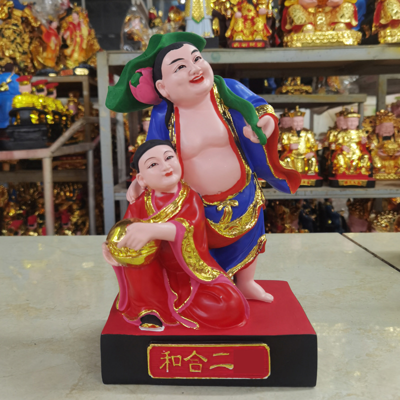 和合二圣树脂佛像客厅居家摆件人物桌面玄关12寸26寸摆件创意红色