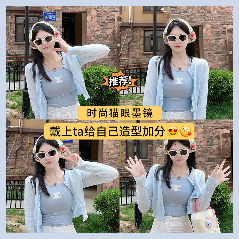 复古猫眼墨镜女款2024新款高级感方圆脸防晒太阳镜登山可配近视镜