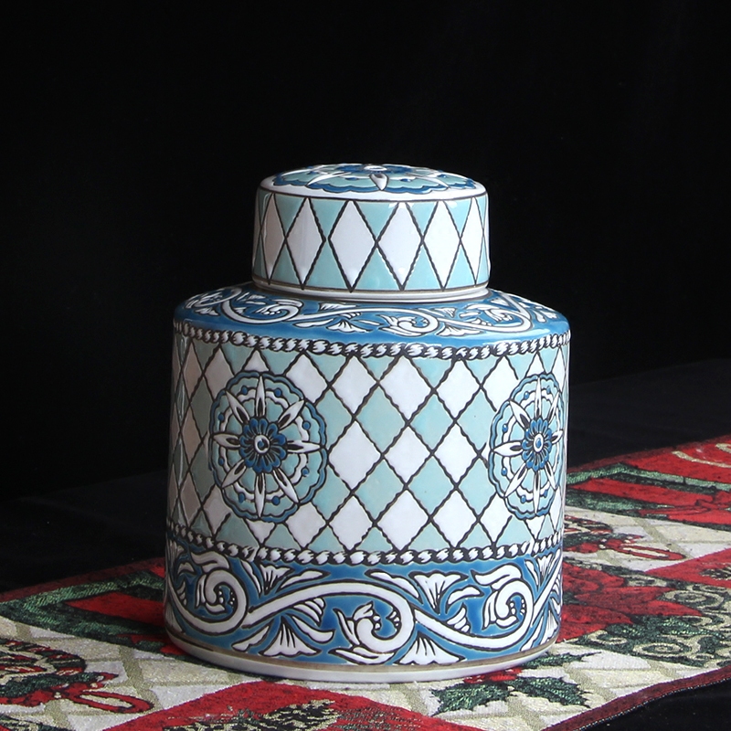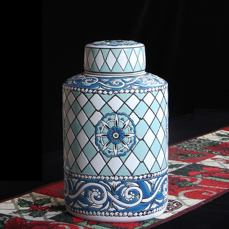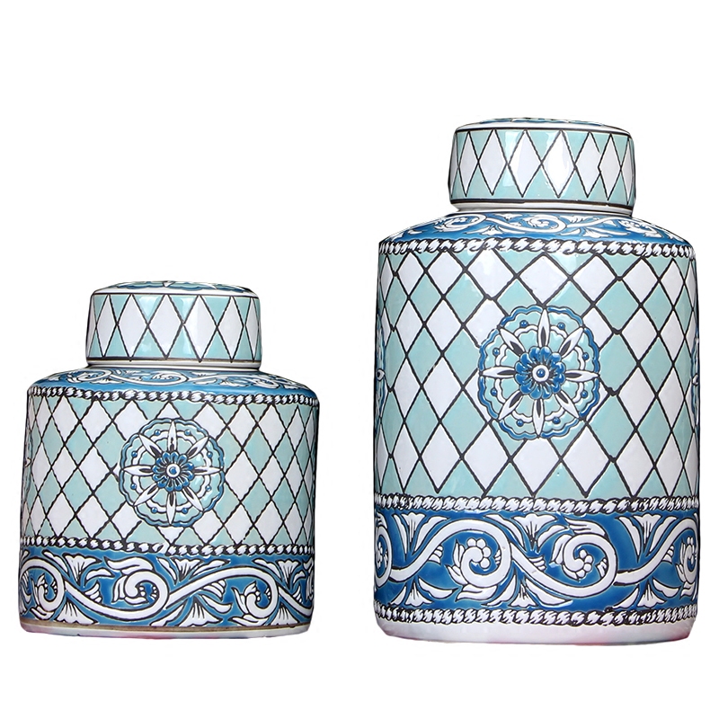 新中式高档欧式陶瓷摆件蓝色地中海储物罐花瓶客厅博古架玄关装饰