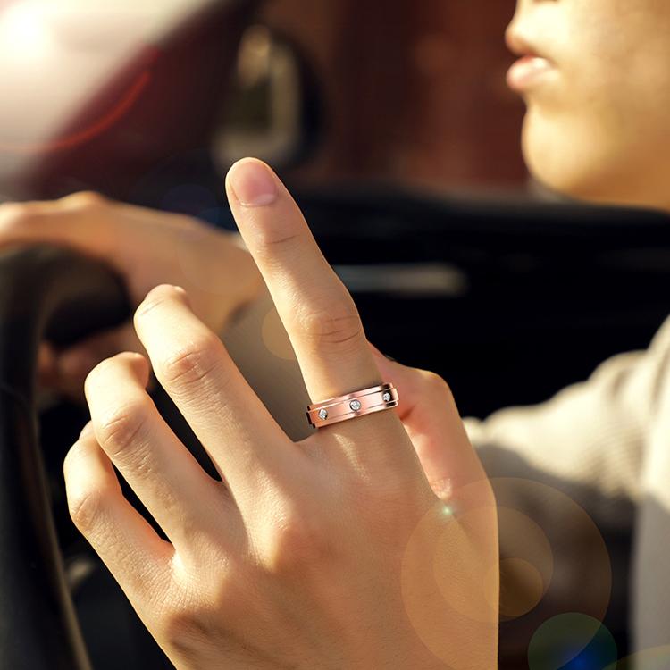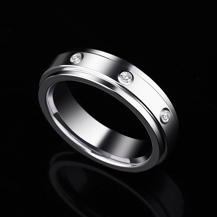 轻奢莫桑石戒指转动男潮食指戒可转动玫瑰金色镶三钻男女情侣对戒