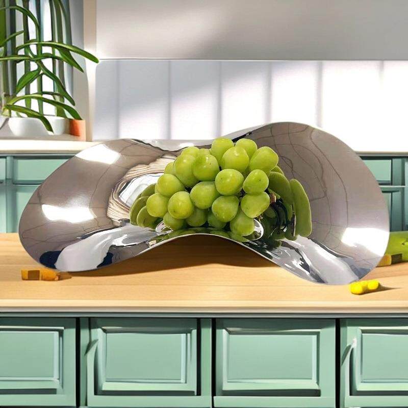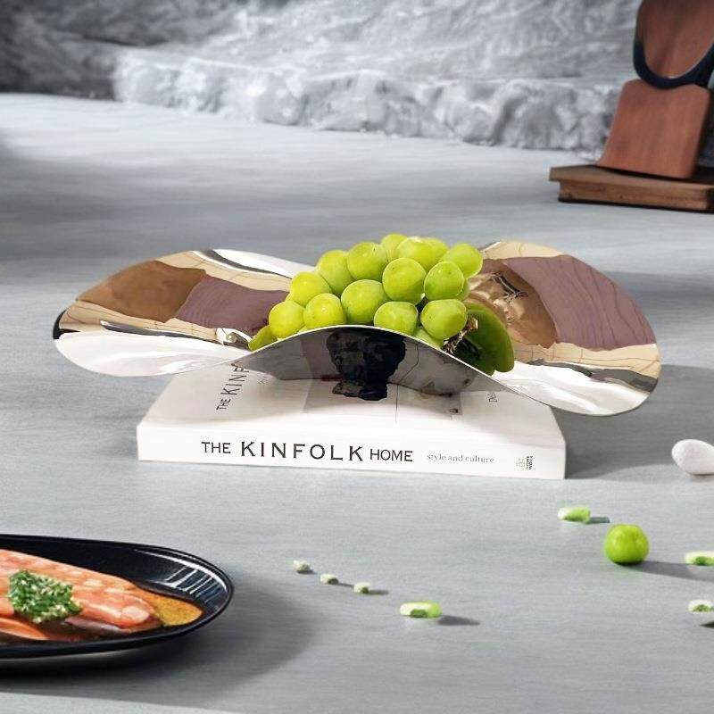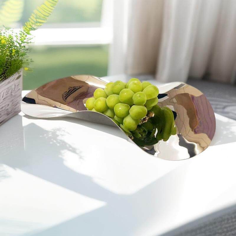 欧式银色304不锈钢不规则流线果盘托盘摆件厨房餐厅样板房软装饰