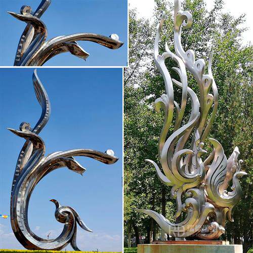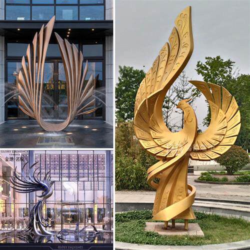 不锈钢凤凰雕塑定制大型广场景观创意孔雀烤漆动物羽翼金属摆件