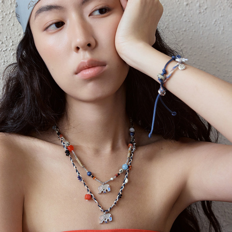 【吉象如意】GOOGMO多巴胺彩色串珠小象吊坠项链法式复古好运礼物