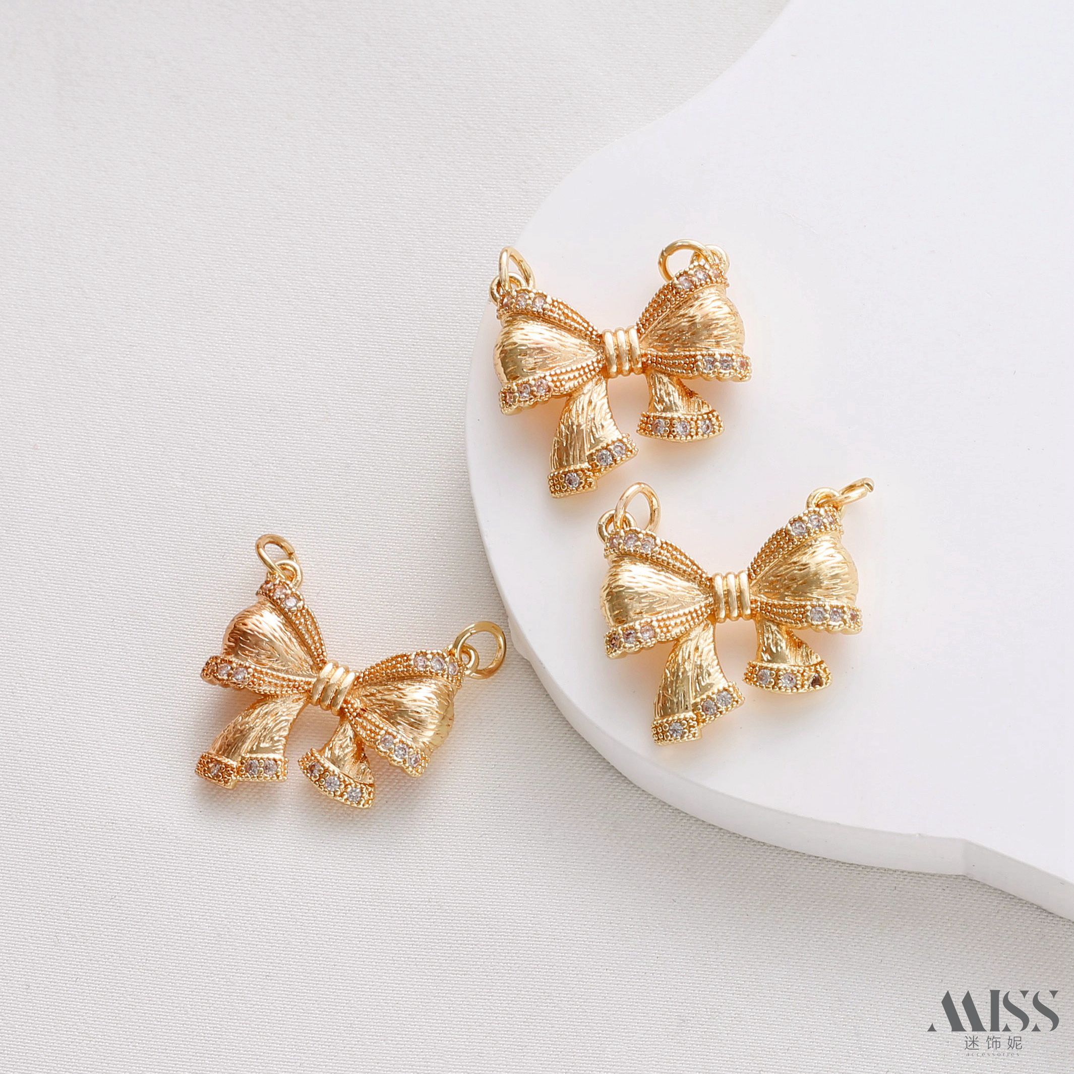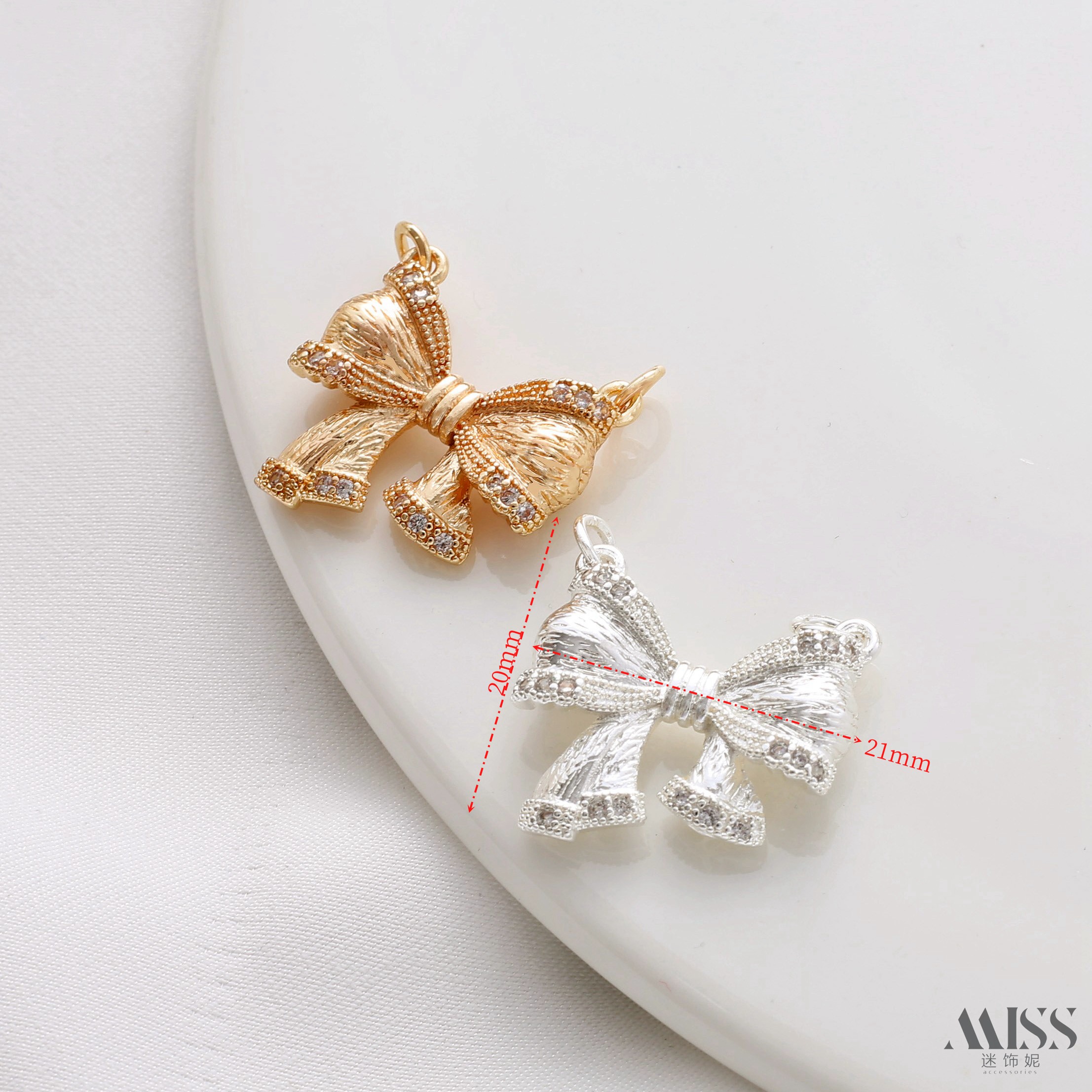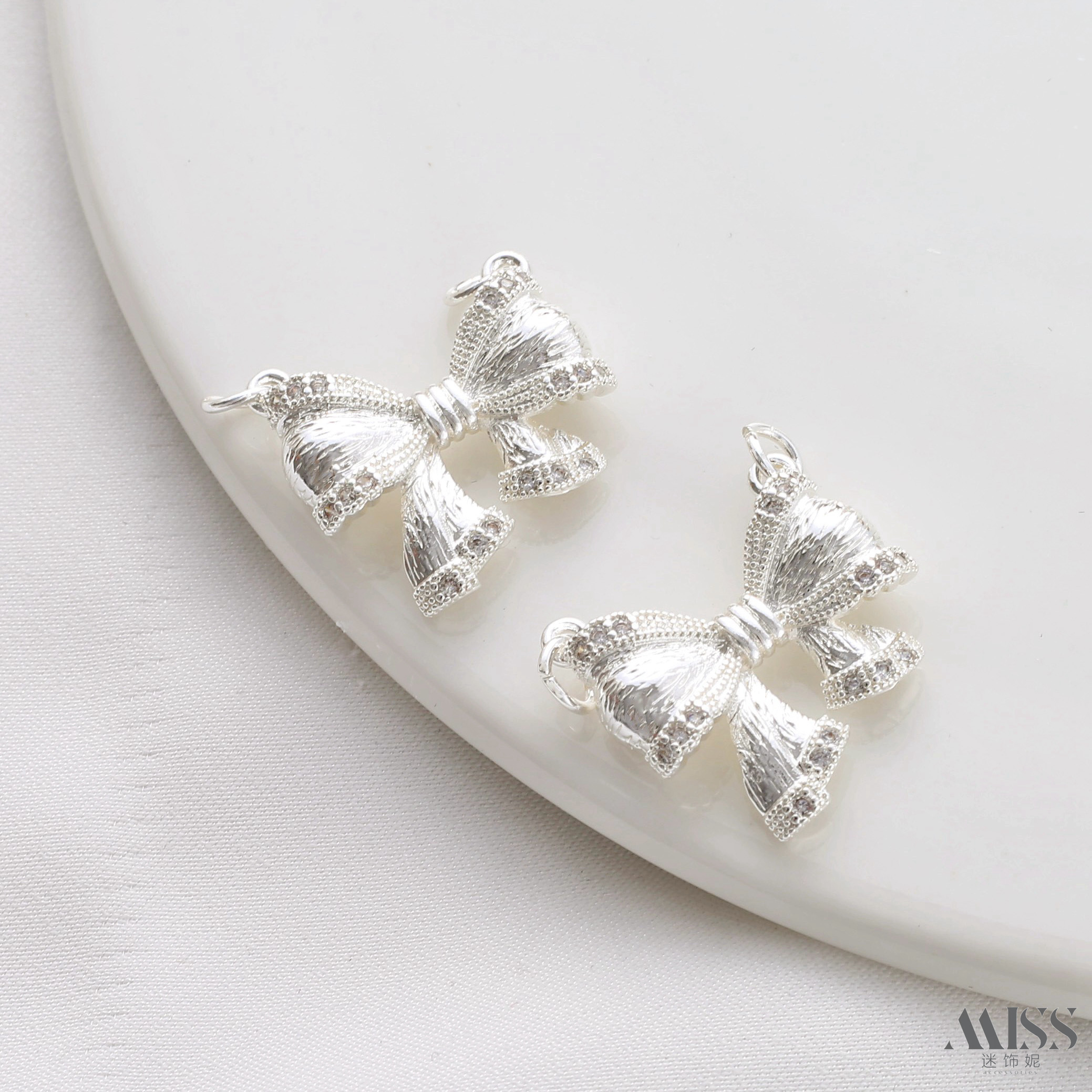 14K包金保色银色镶钻神仙蝴蝶结在逃公主吊坠diy毛衣项链吊饰配件