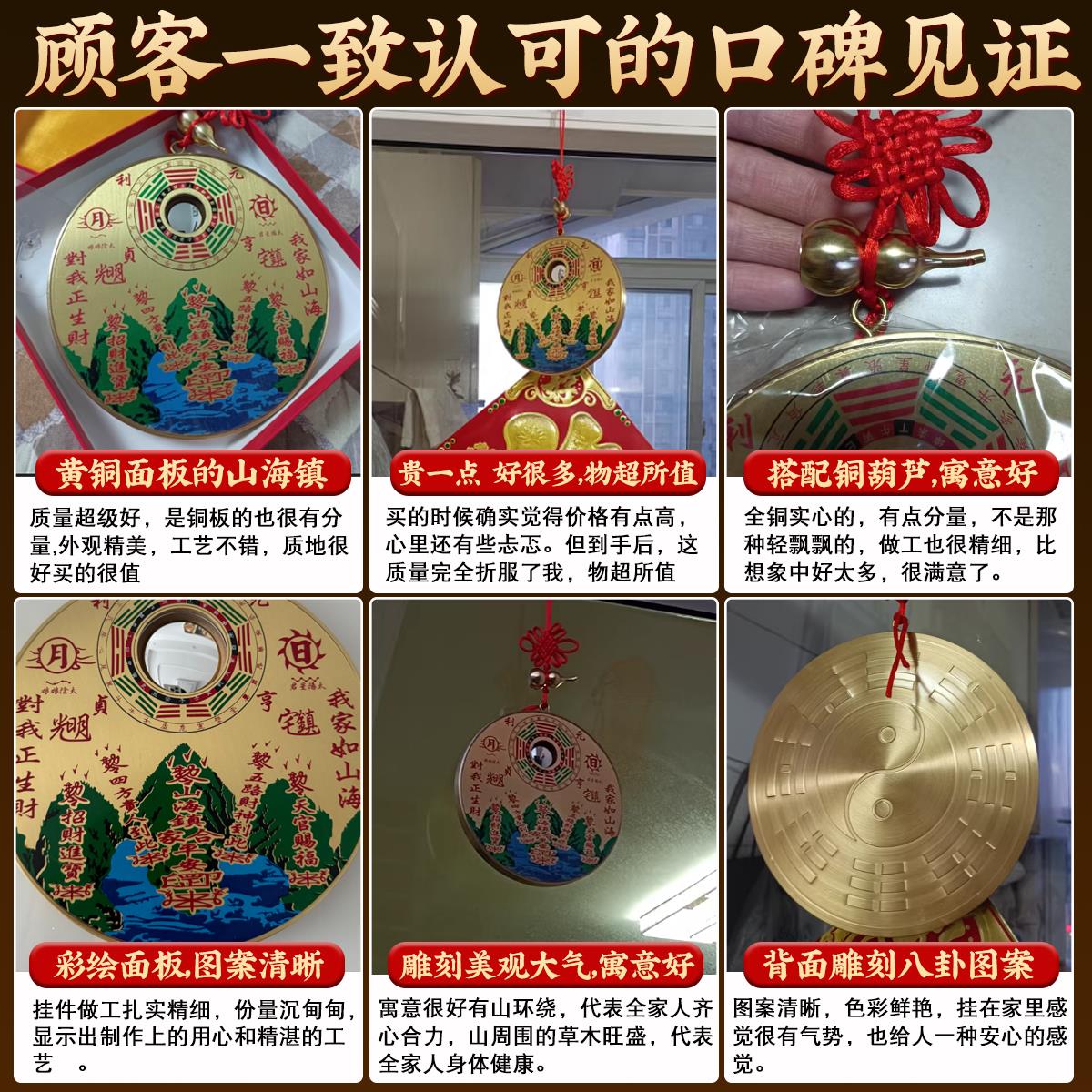 山海镇纯黄铜八卦镜客厅摆件室外大门窗户室内挂件山水镇山海镇图