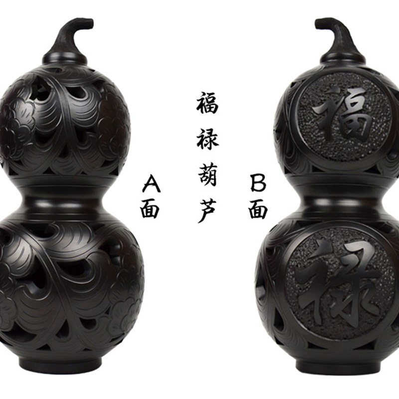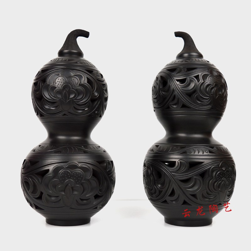 邯郸特产礼品镂空陶艺中式摆件装饰品纯手工雕刻黑陶小葫芦礼盒装