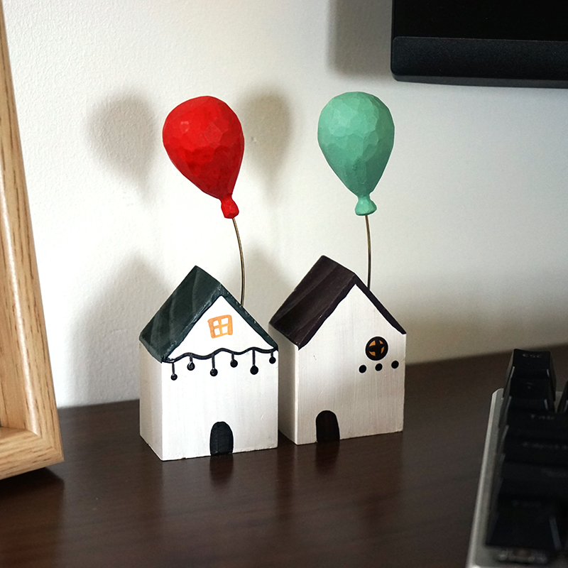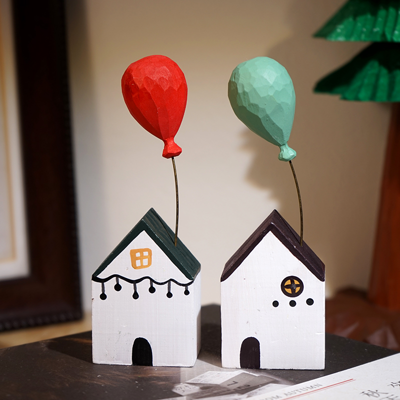 “飞屋环游记”手工木雕小摆件气球小房子办公室电脑书桌面装饰品