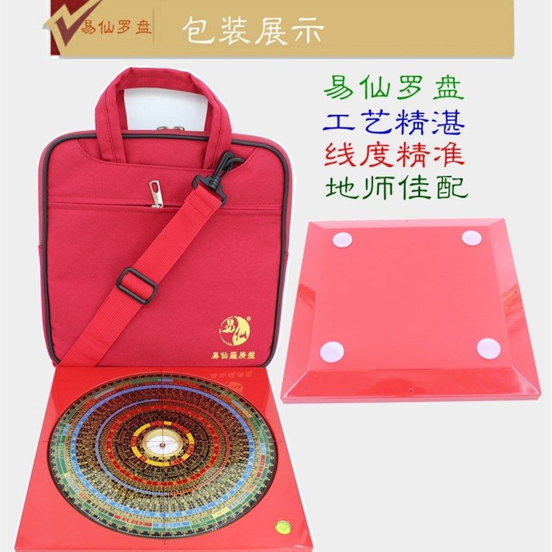 易仙强磁针8寸6奇门综合罗盘凤麟 三元综合三般卦红色电木盘 摆件