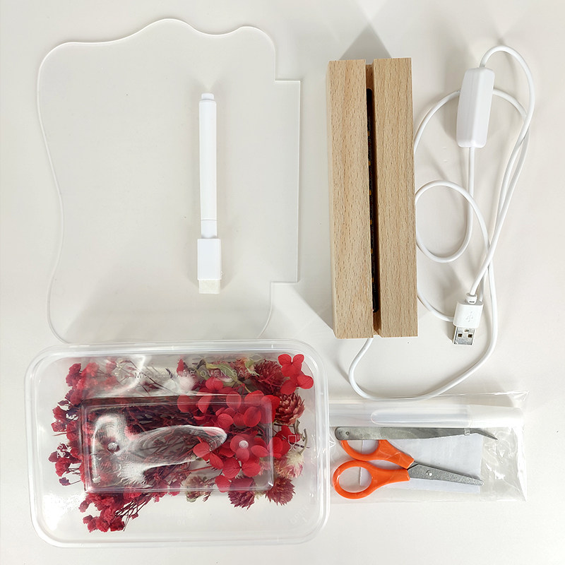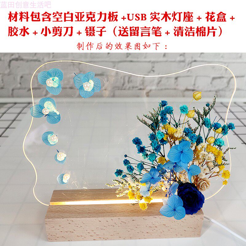 diy永生花小夜灯材料包透明创意发光留言板自制干燥花实木灯座摆