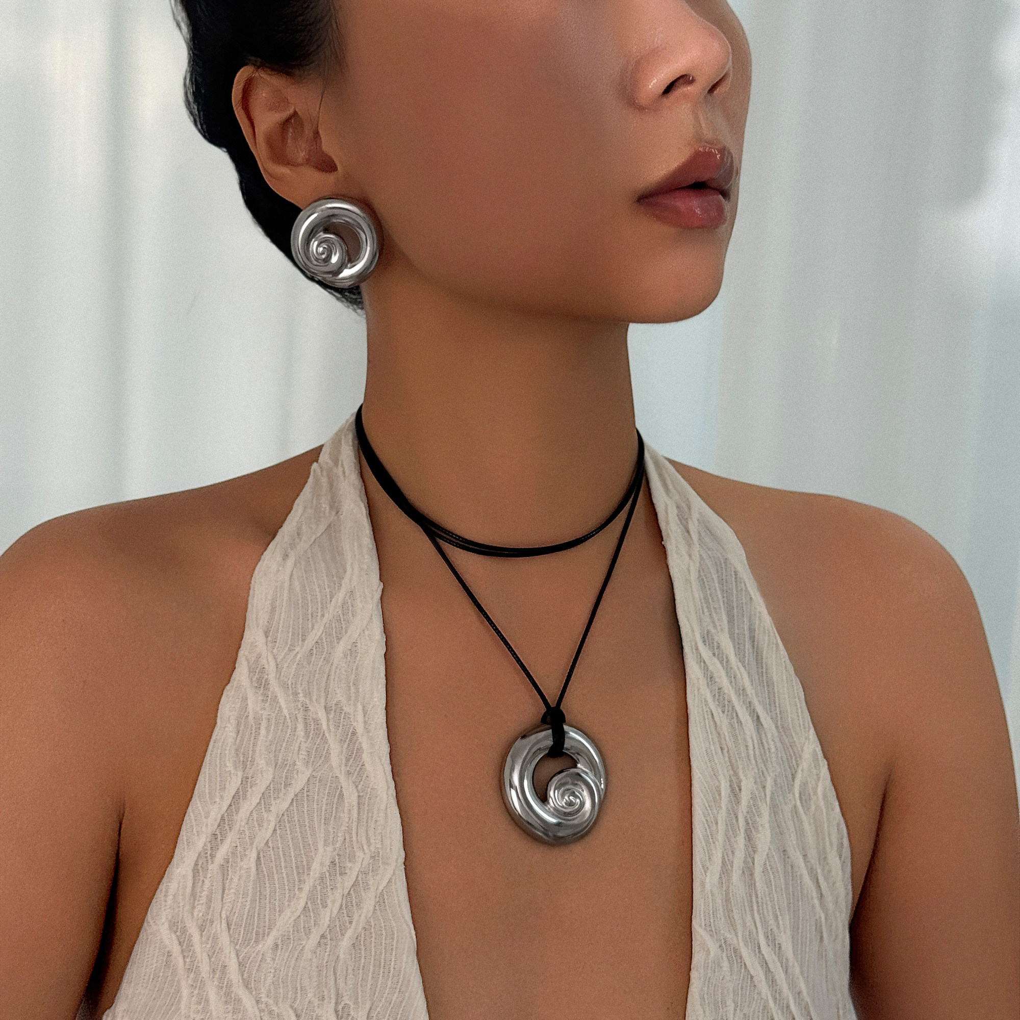 【DASEIN】百搭新时尚中古风小众高级感复古超夸张太极项链耳环