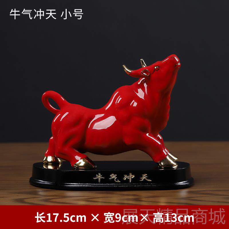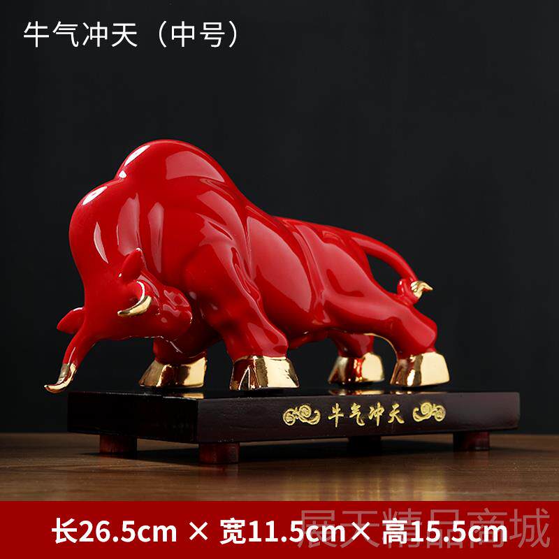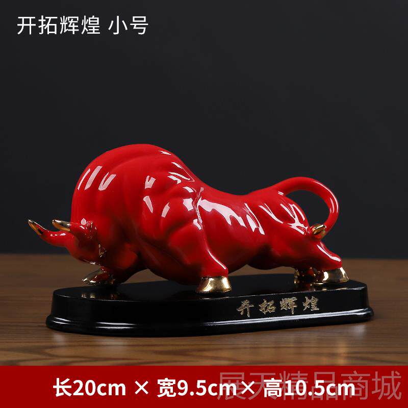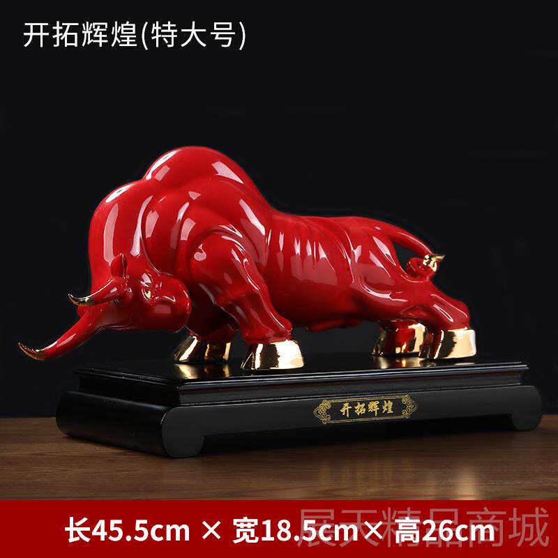 正品陶瓷牛摆件创意红色牛牛年新年饰吉祥物尔街装工艺品华牛开业