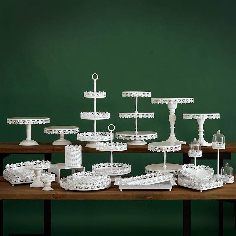 白色系点心盘 铁艺蛋糕架婚庆道具 欧式甜品台摆件 蕾丝边蛋糕盘