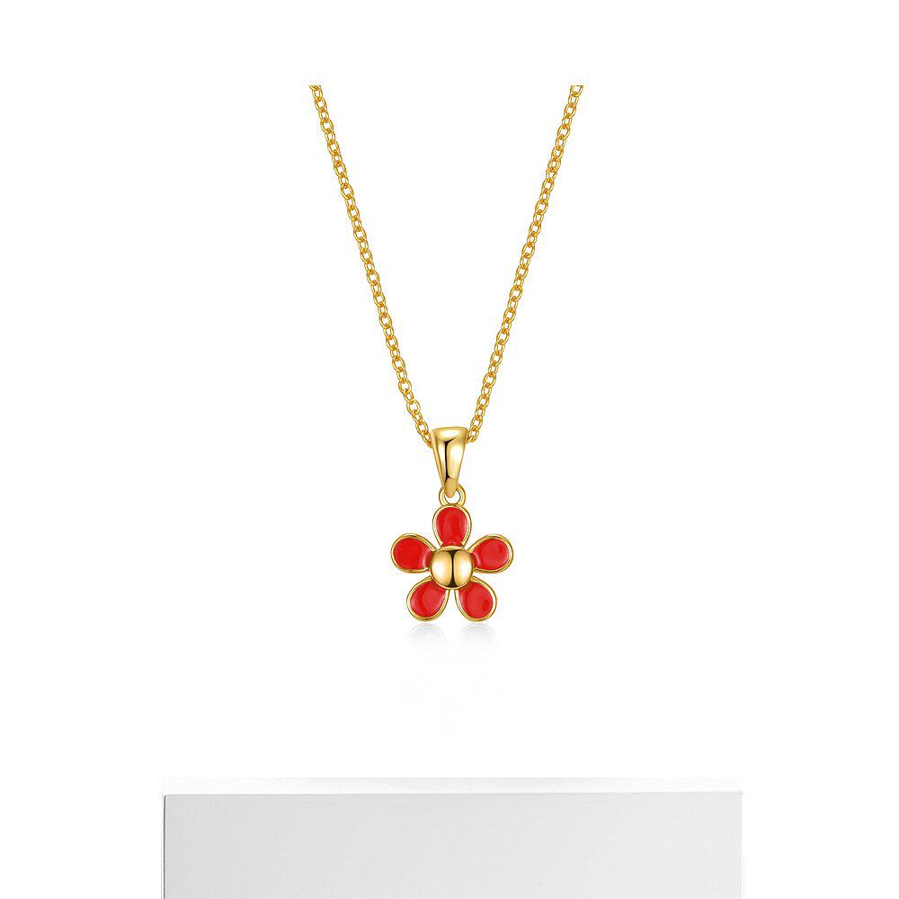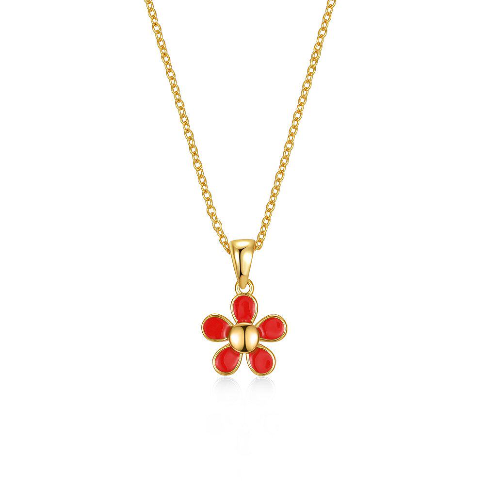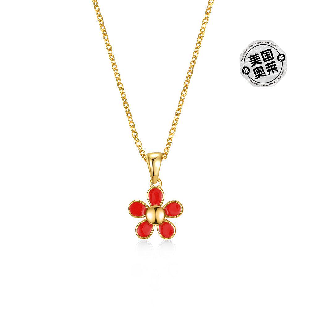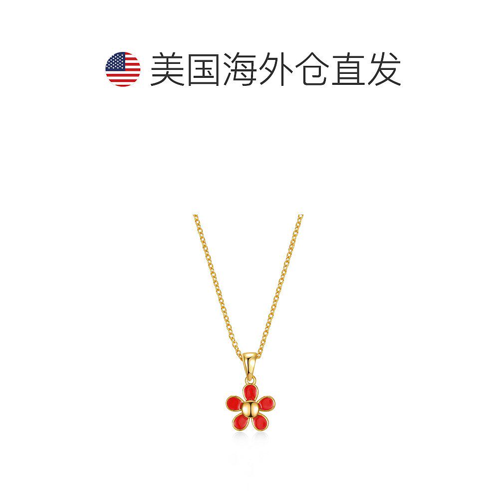 自营 geneviveGa 14k 镀金红色珐琅盛开花朵分层项链 - 红色 美国
