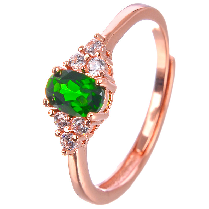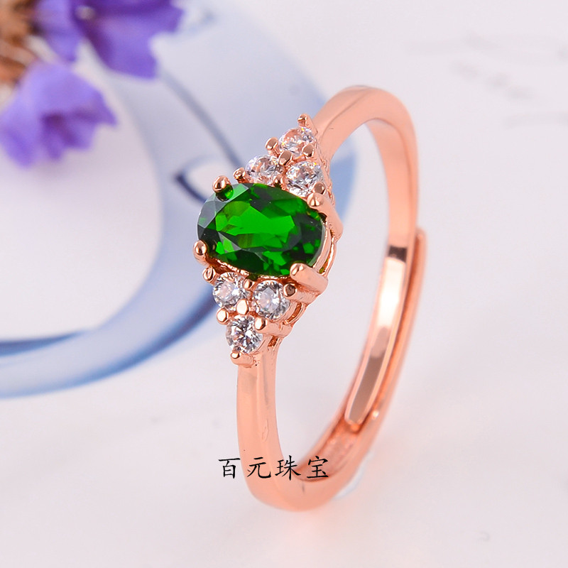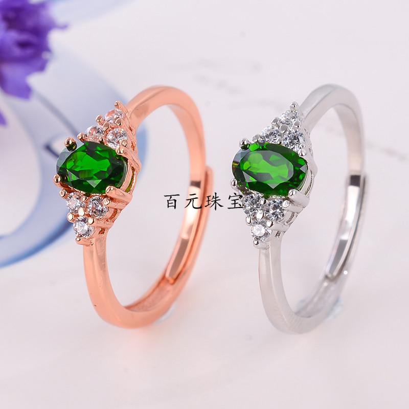厂家直销祖母绿色透辉石戒指指环银镀18K金送礼轻奢复古特价包邮