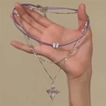 「香芋紫蝶」紫色蝴蝶项链女款2024新款多层叠戴锁骨链超夏季配饰