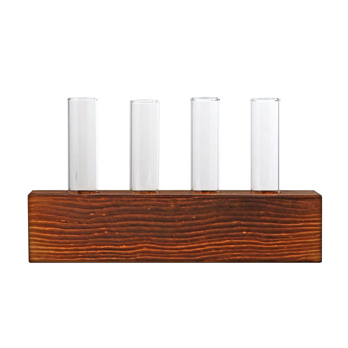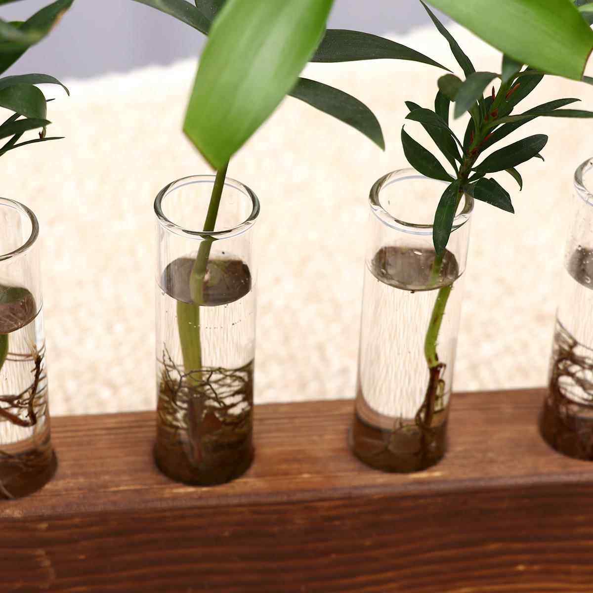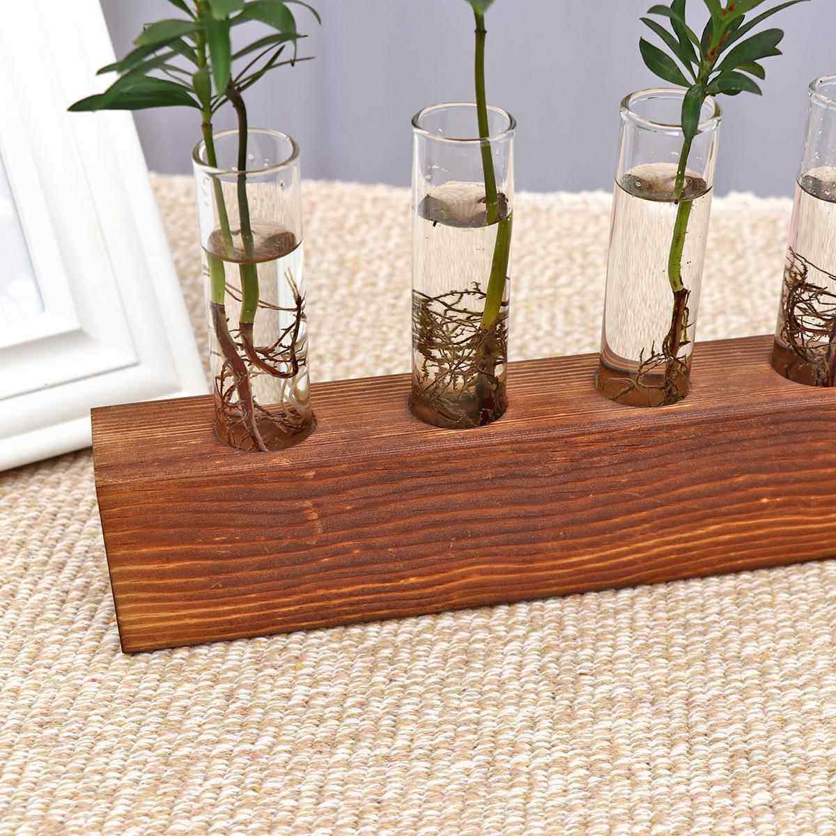 玻璃水培试管插花器复古透明桌面小花瓶木艺水养绿萝植物花盆摆件