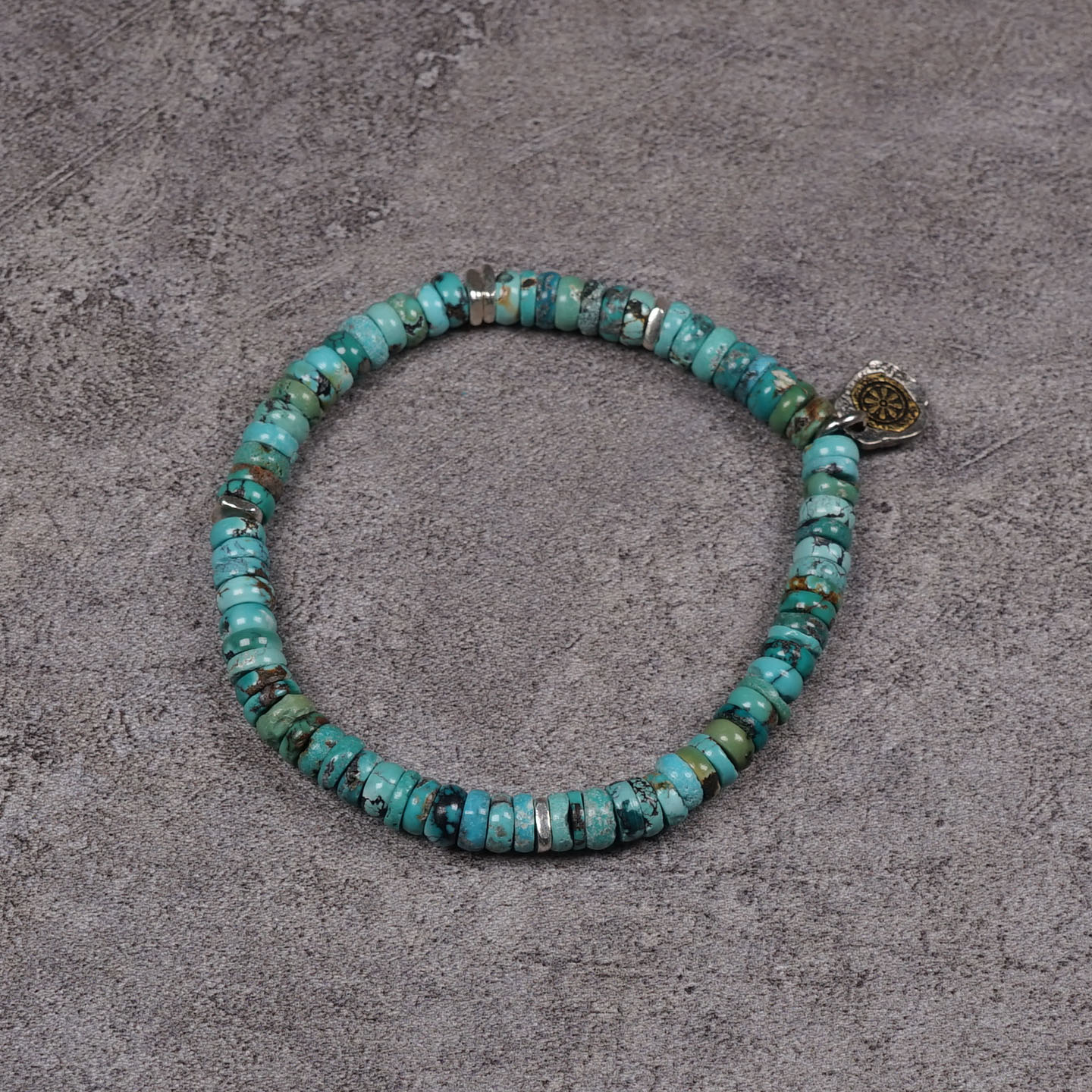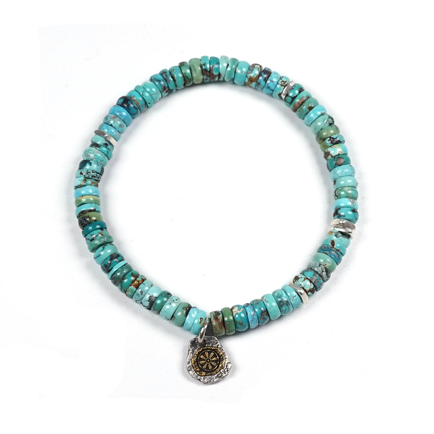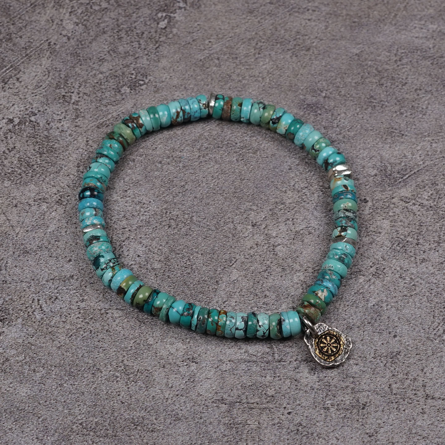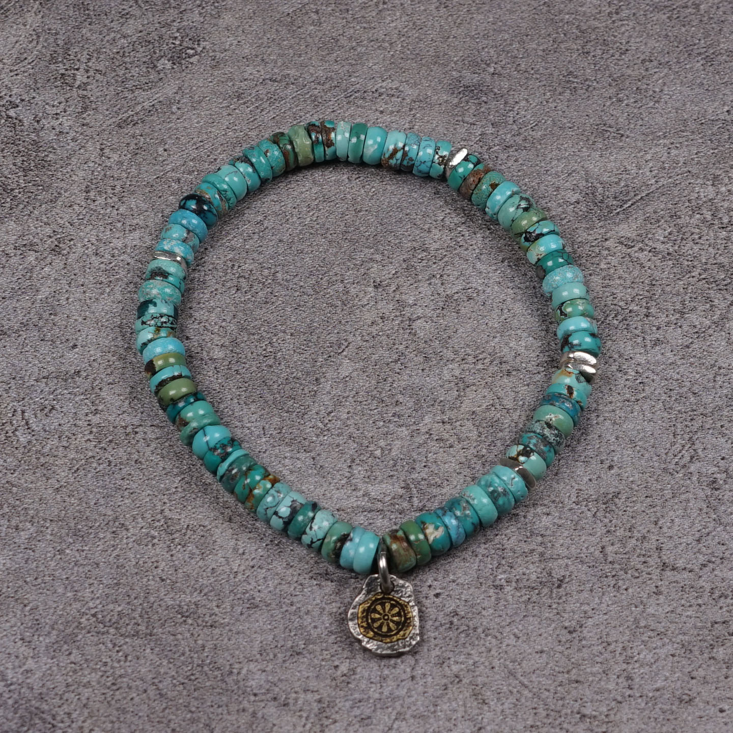 POHIER宝喜儿原创藏式八福经纶纯银天然原矿绿松石手链男女串珠