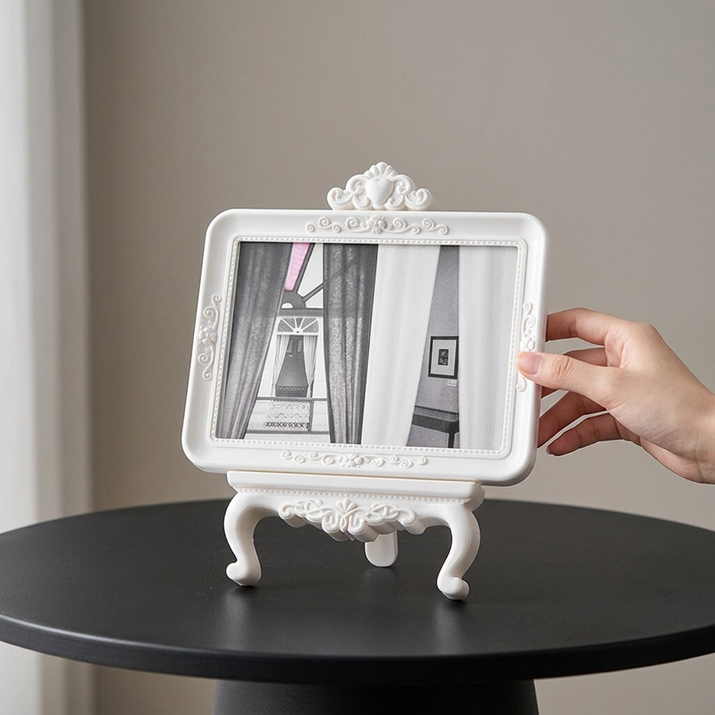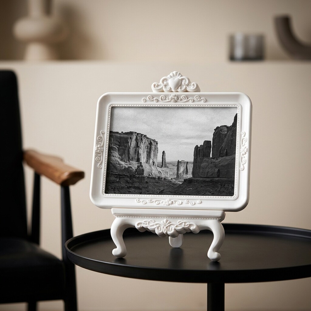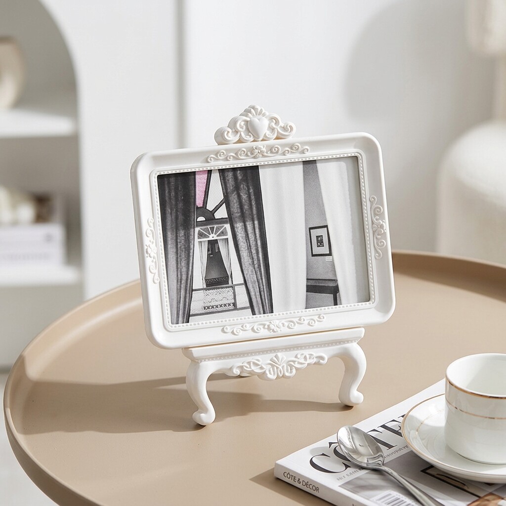 欧式复古雕花相框摆件白色树脂装饰画框桌面立式少女心