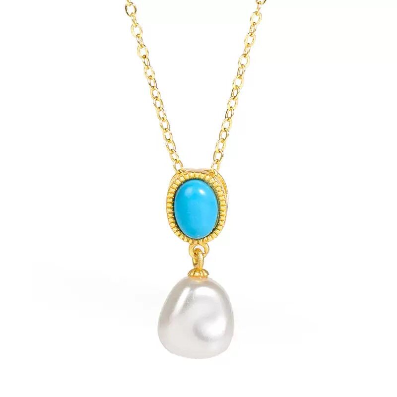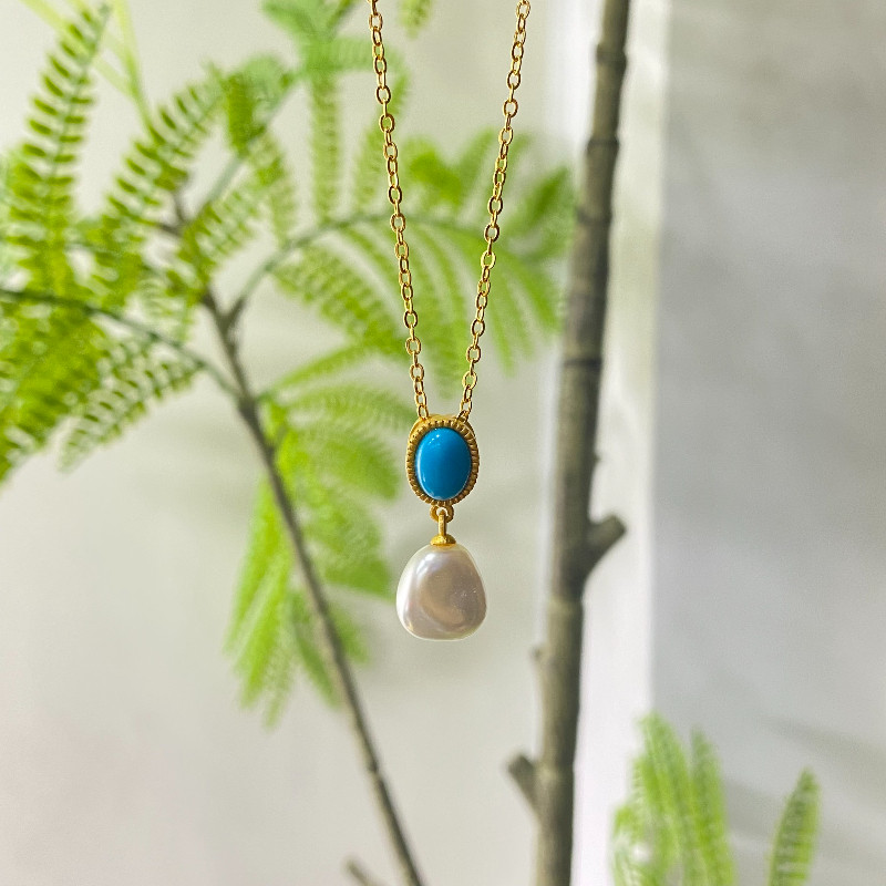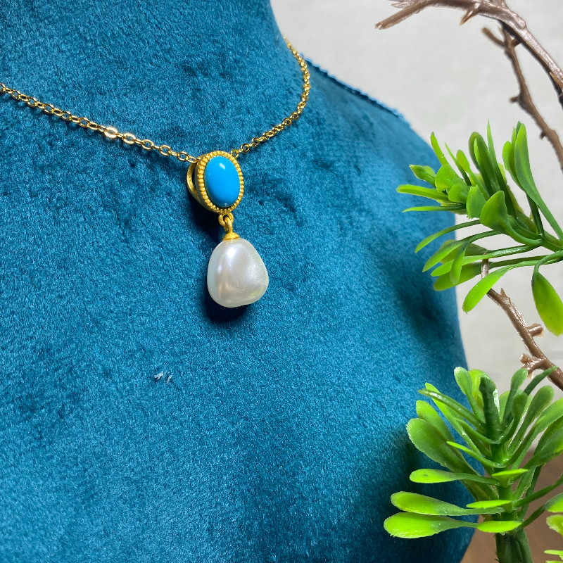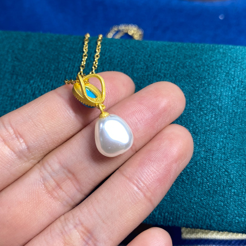 绿色石成熟长辈吊坠女款 巴洛克贝珠气质项链女款 复古小众百搭款