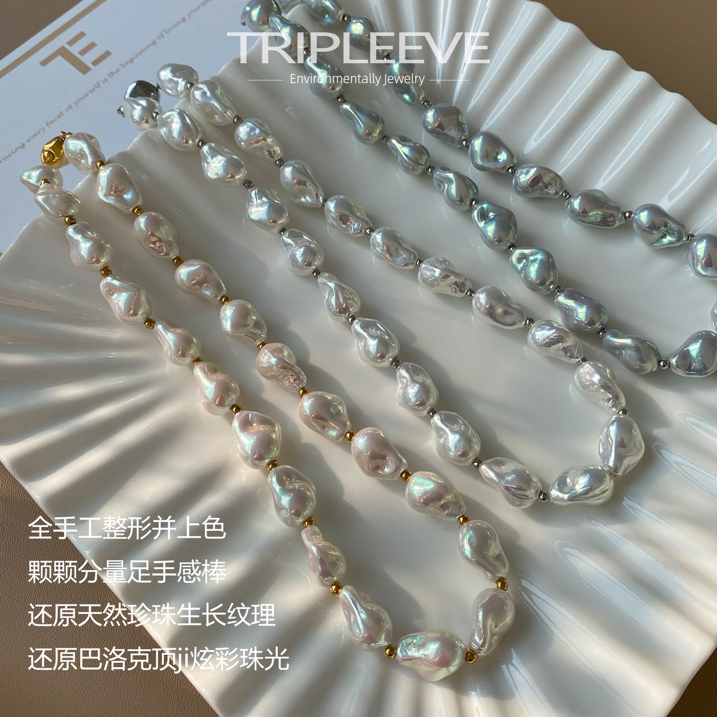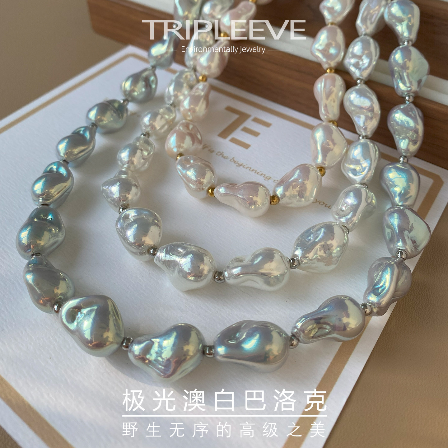 野生无序之美!极光伴彩澳白大巴洛克珍珠项链原创设计小众锁骨链