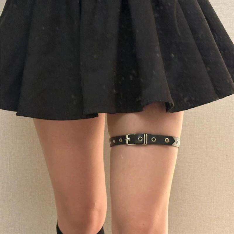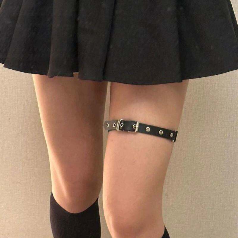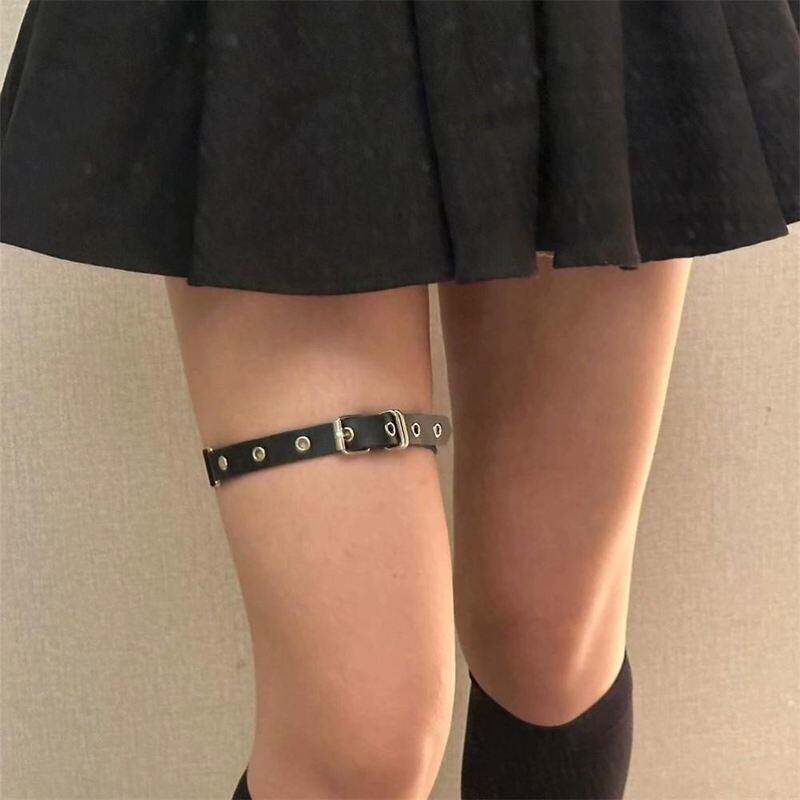 赵露思同款暗黑朋克辣妹腿链女钉针扣腿环性感腿饰可调节黑色