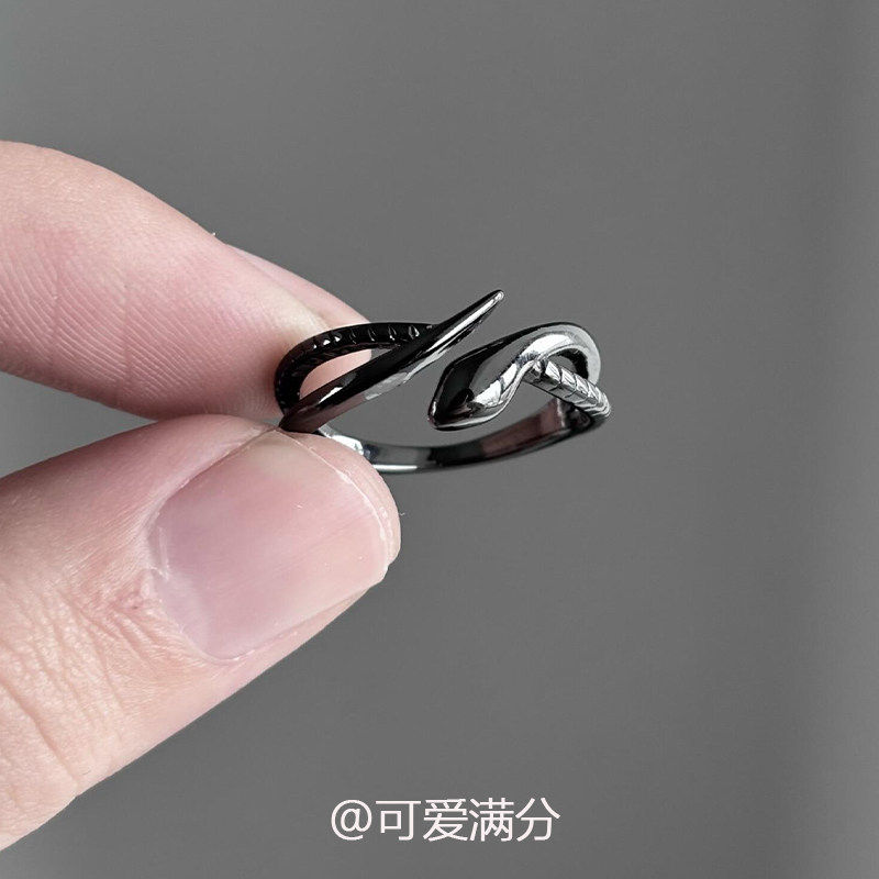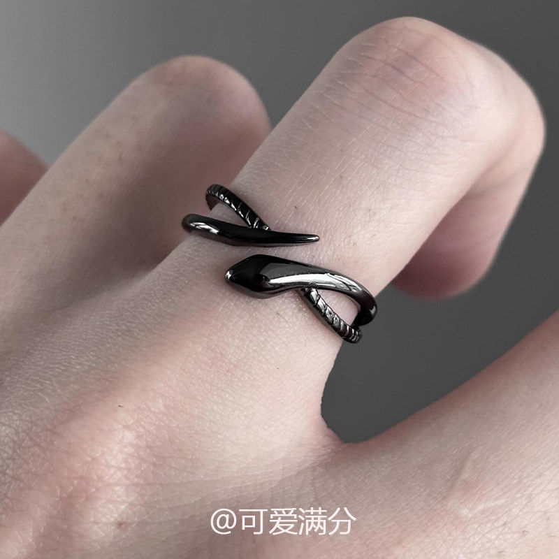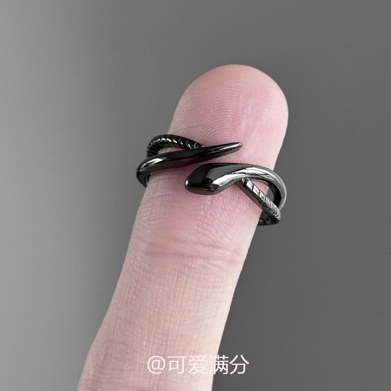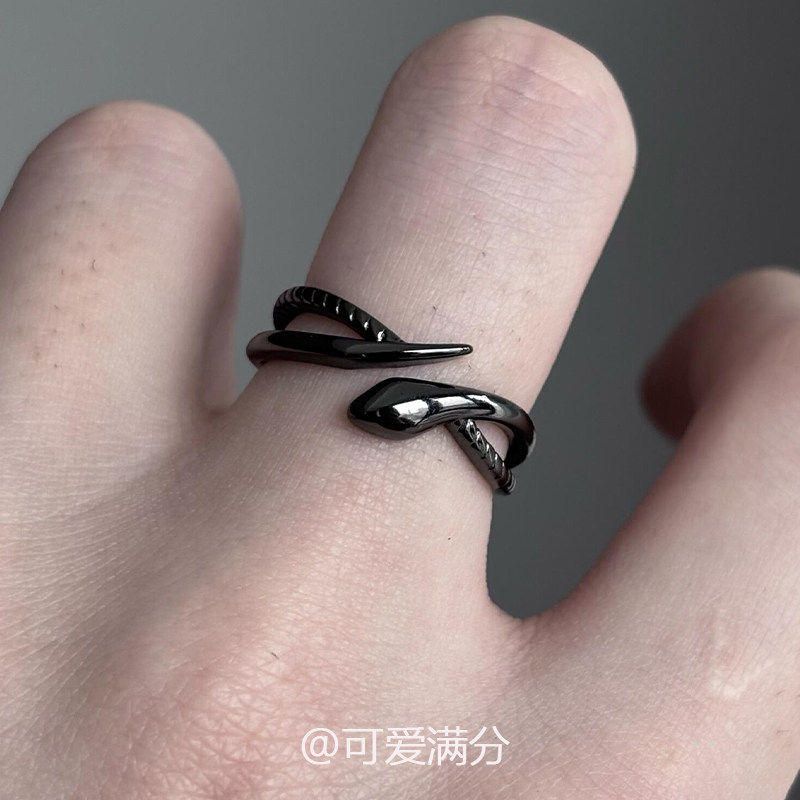 玄蛇星络!复古黑色蛇形开口戒指女小众设计vintage高级感食指戒