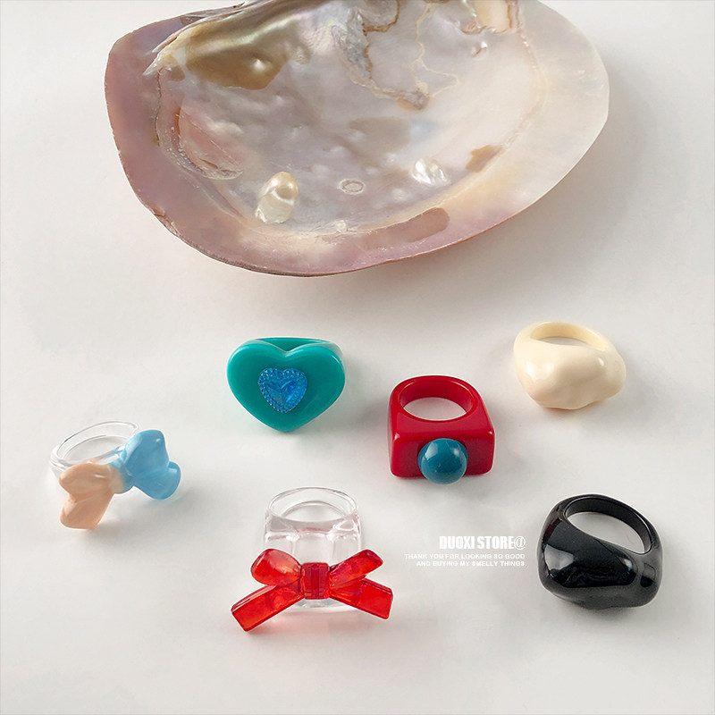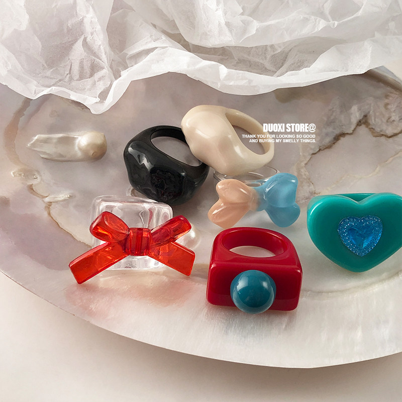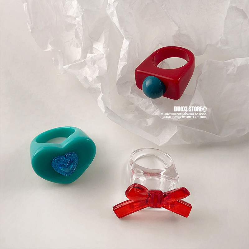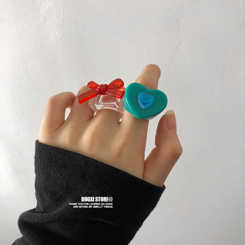 多喜商店【蓝色梦境】极简半圆指环个性冷淡风蝴蝶结夸张拍照戒指