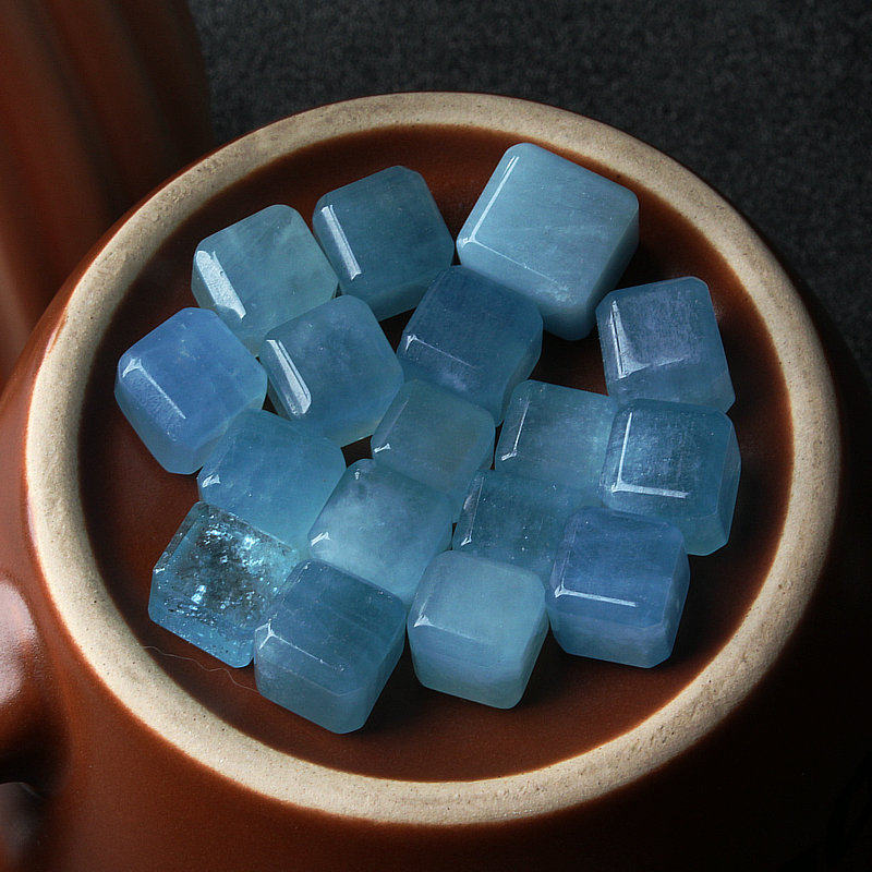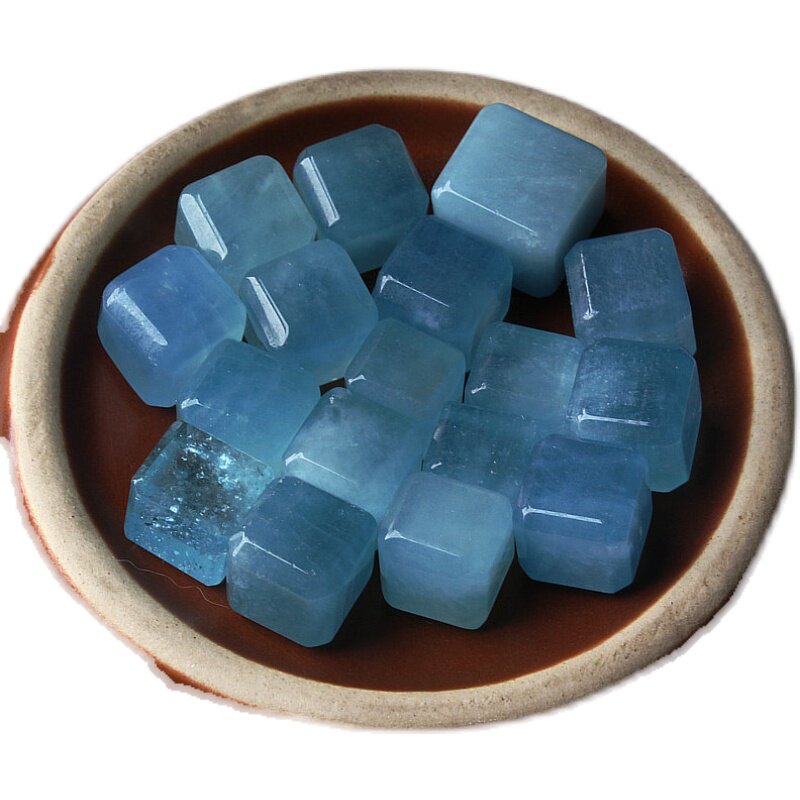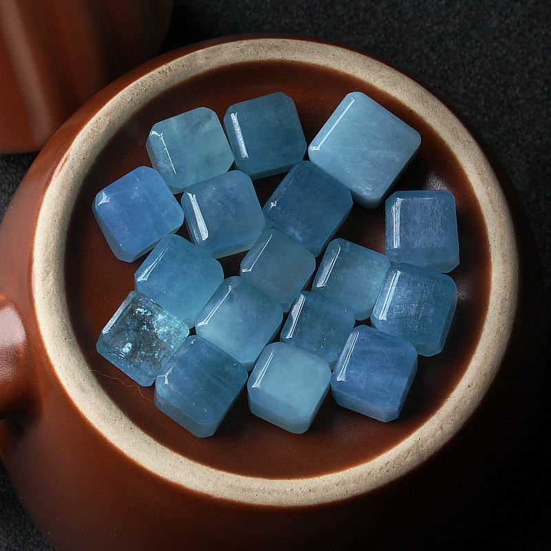 保真天然海蓝宝方块吊坠蓝色魔方石头单珠男女水晶配件一物一图