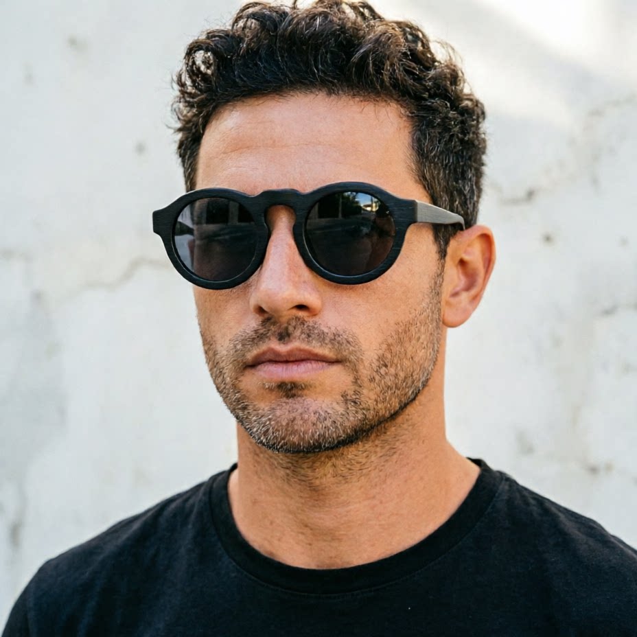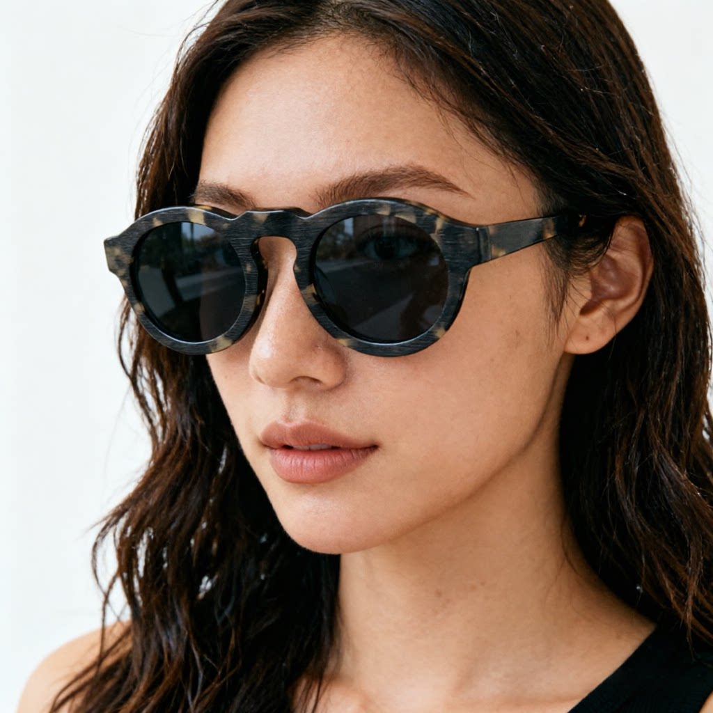 复古男女墨镜板材镜框圆形男士太阳镜木纹理黑色玳瑁高档品质可配