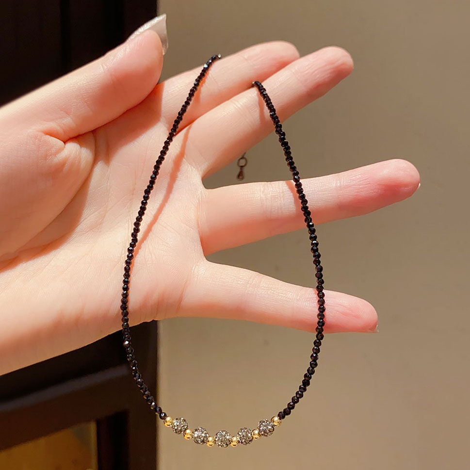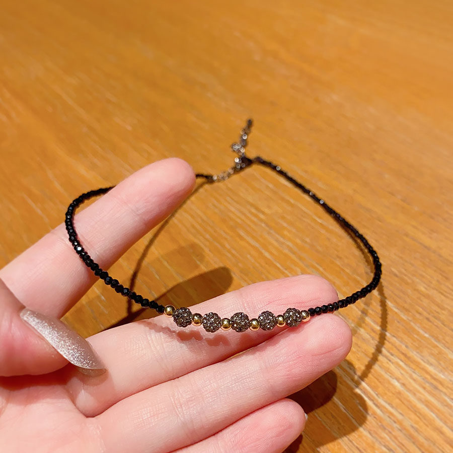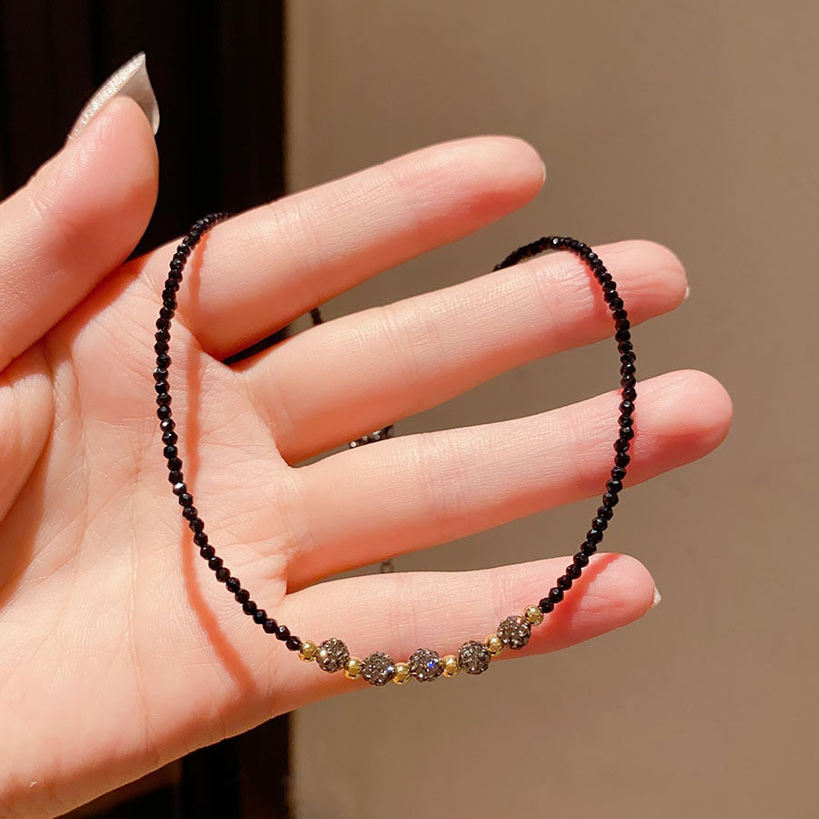 高级感轻奢黑色水晶颈链短款项链女ins冷淡风气质小众春夏锁骨链