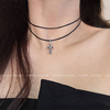 s925纯银复古十字架双层choker黑色颈链女款2025新款项链锁骨链