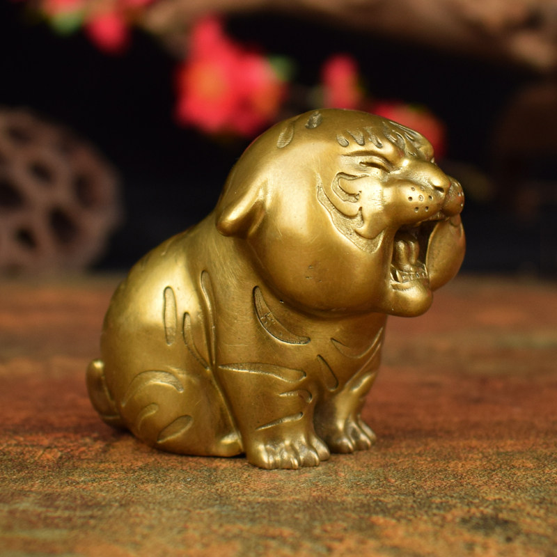 铜实心百兽之王老虎摆件生肖虎手把件虎虎生威男女随身威震八方