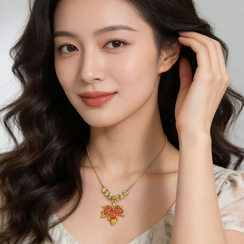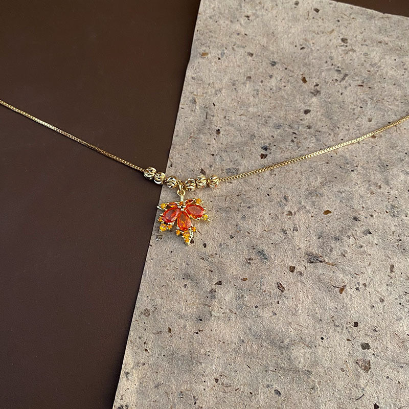 红色枫叶吊坠项链女2026新款爆款锁骨链小众设计轻奢高级感配饰
